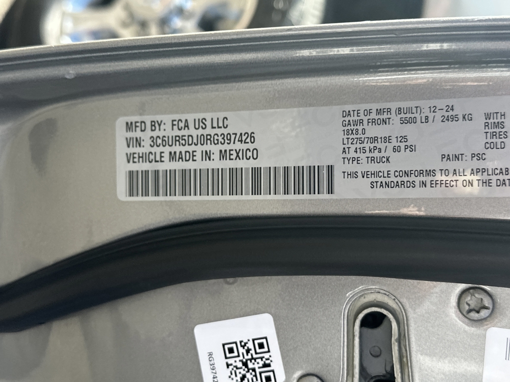 BIG HORN 6.4L V8 4X4, CERTIFIED PRE OWNED INCLUDES WARRANTY, SAFETY GROUP, APPLE CAR PLAY, LEVEL 1 GROUP, BED UTILITY GROUP WITH LED LIGHTING, REAR BACK UP CAMERA, ADAPTIVE CRUISE CONTROL, BLIND SPOT & CROSS PATH DETECTION, LANESENSE LANE DEPARTURE WARNING PLUS, FORWARD COLLISION WARNING PLUS, FACTORY TRAILER BRAKE, SPRAY IN BEDLINER, DEPLOYABLE BED STEP, RUNNING BOARDS, 8.4 INCH TOUCHSCREEN, SATELLITE RADIO, KEYLESS ENTRY, PUSH BUTTON START, UCONNECT VOICE COMMAND WITH BLUETOOTH, STEERING WHEEL MOUNTED AUDIO CONTROLS, POWER SEAT, FACTORY SECURITY SYSTEM, FOG LAMPS, TOWING PACKAGE / HITCH, TIRE PRESSURE MONITORING DISPLAY, ALL POWER AND MUCH MORE, CARFAX CERTIFIED, 1 OWNER, INCLUDES THE REMAINDER OF THE FACTORY WARRANTY, EXTENDED WARRANTY AVAILABLE. Billet Silver Metallic Clearcoat 2024 Ram 2500 Big Horn 6.4L V8 4WDMUST MENTION OR PRESENT AD AT TIME OF PURCHASE TO RECEIVE THE ADVERTISED PRICE. Welcome to Palmer DCJR! We are proud to be a family-owned business serving the greater Roswell area for 30 years. Here at Palmer, we make customer service our top priority. We are also pleased to be able to offer a buying process that can be completed from start to finish online! We will deliver your new vehicle right to your door. Whether you are in search of your next car or looking for a service center you can trust, Palmer Dodge Chrysler Jeep Ram is the place to go. Give us a call, fill out our online form, or stop by for an incredible automotive experience today! THE ADVERTISED PRICE INCLUDES ALL INCENTIVES INCLUDING IRS EV CREDIT BUT DOES NOT INCLUDE SALES TAX, VEHICLE REGISTRATION FEES, OTHER FEES REQUIRED BY LAW, OR FINANCE CHARGES. SOME OFFERS INCLUDE FINANCING WITH APPROVED LENDERS FOR ADVERTISED PRICE. Palmer Dodge is proudly serving... Atlanta, Buckhead, Duluth, Suwanee, Alpharetta, Cumming, Gainesville, Flowery Branch, Buford, Roswell, Jasper, Canton, Woodstock, Peachtree, Ball Ground, Jefferson, Athens, Augusta, Buford, Conyers, Decatur, Tucker, Milton, Douglasville, Alpharetta, Marietta, Sandy Springs, Dunwoody, Johns Creek, Lawrenceville, Lilburn, Chamblee, Stone Mountain, Vinings, Norcross, Oakwood, Sugar Hill, Athens, Kennesaw, Dawsonville. We also service the following states... Georgia, Florida, Alabama, South Carolina, North Carolina, Mississippi, & more.