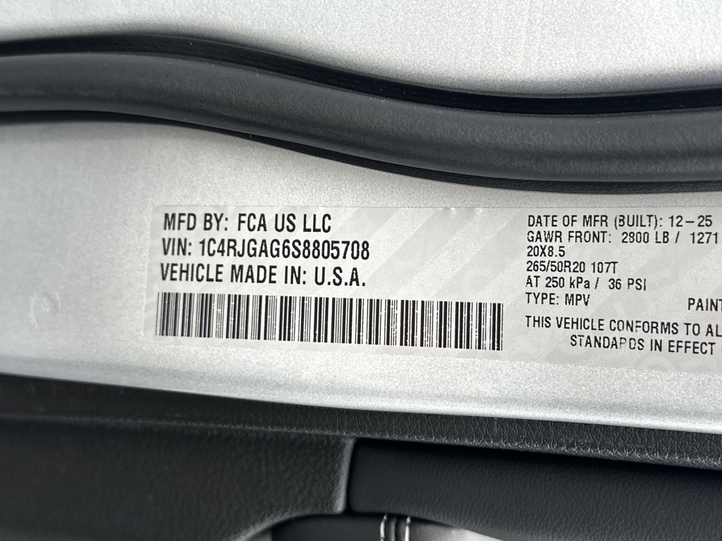 • VIN: 1C4RJGAG6S8805708
