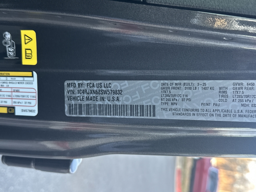 WILLYS HYBRID 4XE 4X4, CERTIFIED PRE OWNED INCLUDES WARRANTY, UCONNECT 5 WITH 12.3 INCH TOUCHSCREEN AND APPLE CAR PLAY, FACTORY GRAY 20 INCH WHEELS, AUX SWITCHES, 4.1 REAR AXLE LOCK, ROCK RAILS, TOWING PACKAGE / HITCH, REAR BACK UP CAMERA, AUTOMATIC TRANSMISSION, ADAPTIVE CRUISE CONTROL, FORWARD COLLISION WARNING PLUS, LED LIGHTING GROUP, HARD TOP, SATELLITE RADIO, KEYLESS ENTRY, PUSH BUTTON START, UCONNECT VOICE COMMAND WITH BLUETOOTH, STEERING WHEEL MOUNTED AUDIO CONTROLS, FACTORY SECURITY SYSTEM, FOG LAMPS, TIRE PRESSURE MONITORING DISPLAY, ALL WEATHER RUBBER FLOOR MATS, CARFAX CERTIFIED, 1 OWNER, INCLUDES THE REMAINDER OF THE FACTORY WARRANTY, EXTENDED WARRANTY AVAILABLE, SOME OFFERS INCLUDE FINANCING WITH APPROVED LENDERS FOR ADVERTISED PRICE.. Granite Crystal Metallic Clearcoat 2025 Jeep Wrangler Willys 4xe 2.0L I4 DOHC 4WDFCA US LLC Certified Pre-Owned Details:* Limited Warranty: 3 Month/3,000 Mile (whichever comes first) after new car warranty expires or from certified purchase date* Transferable Warranty* Roadside Assistance* Vehicle History* 125 Point Inspection* Warranty Deductible: $100* Powertrain Limited Warranty: 84 Month/100,000 Mile (whichever comes first) from original in-service date* Vehicles Up to 75,000 Miles and/or 5 Model Years. 24-Hour Towing & Roadside Assistance, Car Rental Allowance, CARFAX® Vehicle History ReportTM and an Introductory 3-month Subscription to SiriusXM® Satellite Radio & Certified Warranty UpgradesMUST MENTION OR PRESENT AD AT TIME OF PURCHASE TO RECEIVE THE ADVERTISED PRICE. Welcome to Palmer DCJR! We are proud to be a family-owned business serving the greater Roswell area for 30 years. Here at Palmer, we make customer service our top priority. We are also pleased to be able to offer a buying process that can be completed from start to finish online! We will deliver your new vehicle right to your door. Whether you are in search of your next car or looking for a service center you can trust, Palmer Dodge Chrysler Jeep Ram is the place to go. Give us a call, fill out our online form, or stop by for an incredible automotive experience today! THE ADVERTISED PRICE INCLUDES ALL INCENTIVES INCLUDING IRS EV CREDIT BUT DOES NOT INCLUDE SALES TAX, VEHICLE REGISTRATION FEES, OTHER FEES REQUIRED BY LAW, OR FINANCE CHARGES. SOME OFFERS INCLUDE FINANCING WITH APPROVED LENDERS FOR ADVERTISED PRICE. Palmer Dodge is proudly serving... Atlanta, Buckhead, Duluth, Suwanee, Alpharetta, Cumming, Gainesville, Flowery Branch, Buford, Roswell, Jasper, Canton, Woodstock, Peachtree, Ball Ground, Jefferson, Athens, Augusta, Buford, Conyers, Decatur, Tucker, Milton, Douglasville, Alpharetta, Marietta, Sandy Springs, Dunwoody, Johns Creek, Lawrenceville, Lilburn, Chamblee, Stone Mountain, Vinings, Norcross, Oakwood, Sugar Hill, Athens, Kennesaw, Dawsonville. We also service the following states... Georgia, Florida, Alabama, South Carolina, North Carolina, Mississippi, & more.