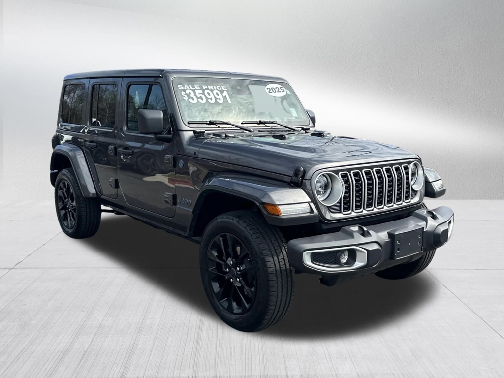 SAHARA 4 DOOR 4X4, CERTIFIED PRE OWNED INCLUDES WARRANTY, UCONNECT 5 WITH 12.3 INCH TOUCHSCREEN AND APPLE CARPLAY, FACTORY 20 INCH BLACK WHEELS, REAR BACK UP CAMERA, JEEP ACTIVE SAFETY GROUP, ADAPTIVE CRUISE CONTROL, BLIND SPOT & CROSS PATH DETECTION, FORWARD COLLISION WARNING PLUS, LED LIGHTING GROUP, COLD WEATHER GROUP, HEATED SEATS, HEATED STEERING WHEEL, PAINTED HARD TOP, HILL DESCENT CONTROL, SATELLITE RADIO, KEYLESS ENTRY, PUSH BUTTON START, REMOTE START, SIDE AIRBAGS, UCONNECT VOICE COMMAND WITH BLUETOOTH, STEERING WHEEL MOUNTED AUDIO CONTROLS, DUAL ZONE FRONT CLIMATE, FACTORY SECURITY SYSTEM, PAINTED WHEEL FLARES, FOG LAMPS, TIRE PRESSURE MONITORING DISPLAY, ALL POWER AND MUCH MORE, CARFAX CERTIFIED, 1 OWNER, INCLUDES THE REMAINDER OF THE FACTORY WARRANTY, EXTENDED WARRANTY AVAILABLE, SOME OFFERS INCLUDE FINANCING WITH APPROVED LENDERS FOR ADVERTISED PRICE.. Granite Crystal Metallic Clearcoat 2025 Jeep Wrangler Sahara 4xe 2.0L I4 DOHC 4WDFCA US LLC Certified Pre-Owned Details:* Vehicles Up to 75,000 Miles and/or 5 Model Years. 24-Hour Towing & Roadside Assistance, Car Rental Allowance, CARFAX® Vehicle History ReportTM and an Introductory 3-month Subscription to SiriusXM® Satellite Radio & Certified Warranty Upgrades* Transferable Warranty* Powertrain Limited Warranty: 84 Month/100,000 Mile (whichever comes first) from original in-service date* Vehicle History* 125 Point Inspection* Limited Warranty: 3 Month/3,000 Mile (whichever comes first) after new car warranty expires or from certified purchase date* Warranty Deductible: $100* Roadside AssistanceMUST MENTION OR PRESENT AD AT TIME OF PURCHASE TO RECEIVE THE ADVERTISED PRICE. Welcome to Palmer DCJR! We are proud to be a family-owned business serving the greater Roswell area for 30 years. Here at Palmer, we make customer service our top priority. We are also pleased to be able to offer a buying process that can be completed from start to finish online! We will deliver your new vehicle right to your door. Whether you are in search of your next car or looking for a service center you can trust, Palmer Dodge Chrysler Jeep Ram is the place to go. Give us a call, fill out our online form, or stop by for an incredible automotive experience today! THE ADVERTISED PRICE INCLUDES ALL INCENTIVES INCLUDING IRS EV CREDIT BUT DOES NOT INCLUDE SALES TAX, VEHICLE REGISTRATION FEES, OTHER FEES REQUIRED BY LAW, OR FINANCE CHARGES. SOME OFFERS INCLUDE FINANCING WITH APPROVED LENDERS FOR ADVERTISED PRICE. Palmer Dodge is proudly serving... Atlanta, Buckhead, Duluth, Suwanee, Alpharetta, Cumming, Gainesville, Flowery Branch, Buford, Roswell, Jasper, Canton, Woodstock, Peachtree, Ball Ground, Jefferson, Athens, Augusta, Buford, Conyers, Decatur, Tucker, Milton, Douglasville, Alpharetta, Marietta, Sandy Springs, Dunwoody, Johns Creek, Lawrenceville, Lilburn, Chamblee, Stone Mountain, Vinings, Norcross, Oakwood, Sugar Hill, Athens, Kennesaw, Dawsonville. We also service the following states... Georgia, Florida, Alabama, South Carolina, North Carolina, Mississippi, & more.