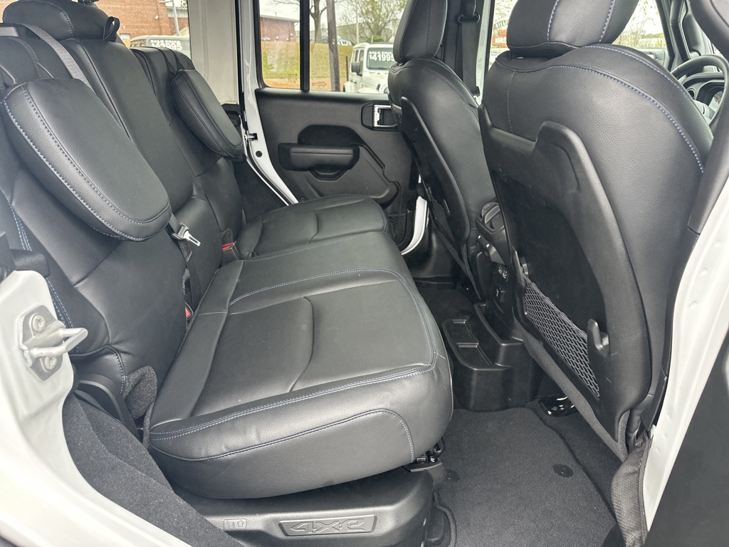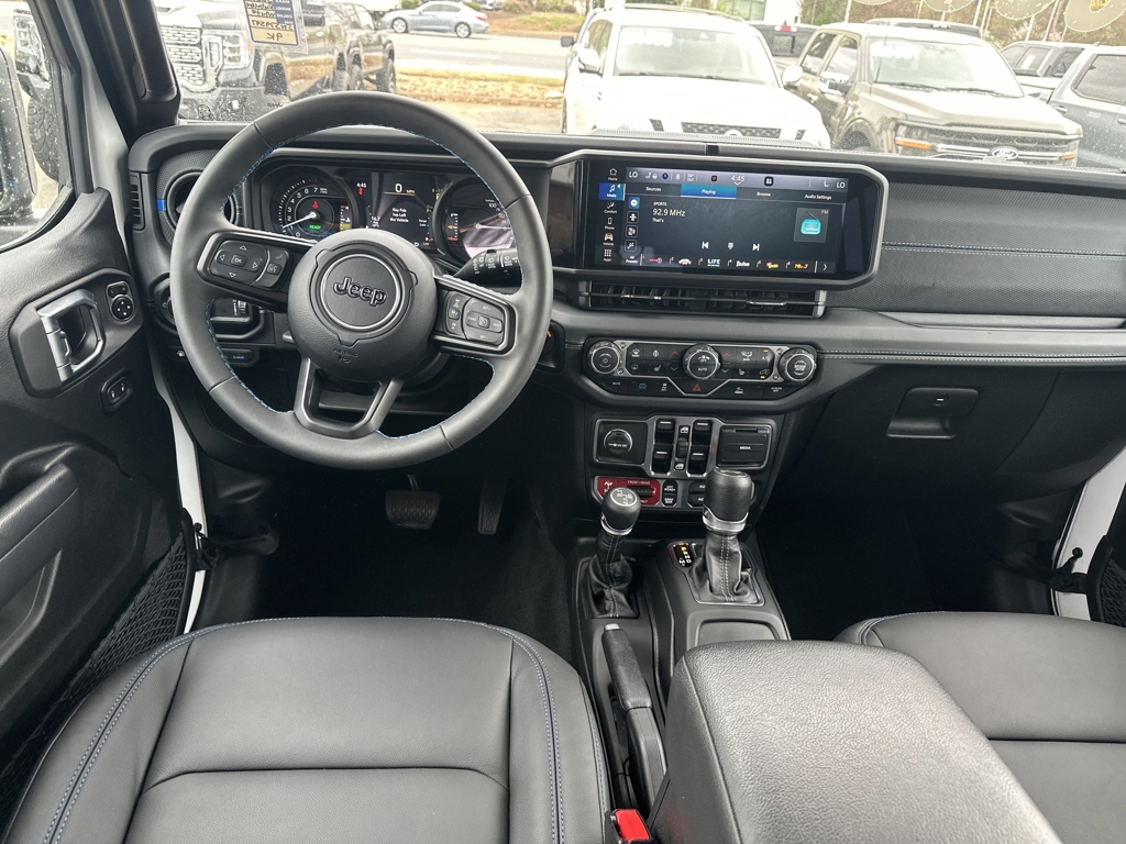 RUBICON HYBRID 4 DOOR WITH SKY ONE TOUCH POWERTOP 4X4, LEATHER INTERIOR, CERTIFIED PRE OWNED INCLUDES WARRANTY 100K WARRANTY, UCONNECT 5 WITH 12.3 INCH TOUCHSCREEN AND APPLE CARPLAY, LED LIGHTING GROUP, CONVENIENCE GROUP, REAR BACK UP CAMERA, ADAPTIVE CRUISE CONTROL, FORWARD COLLISION WARNING PLUS, HEATED SEATS, HEATED STEERING WHEEL, HILL DESCENT CONTROL, SATELLITE RADIO, KEYLESS ENTRY, PUSH BUTTON START, REMOTE START, SIDE AIRBAGS, REAR PARK ASSIST SENSORS, UCONNECT VOICE COMMAND WITH BLUETOOTH, STEERING WHEEL MOUNTED AUDIO CONTROLS, DUAL ZONE FRONT CLIMATE, FACTORY SECURITY SYSTEM, ALLOYS, FOG LAMPS, TIRE PRESSURE MONITORING DISPLAY, ALL POWER AND MUCH MORE, CARFAX CERTIFIED, 1 OWNER, INCLUDES THE REMAINDER OF THE FACTORY WARRANTY, EXTENDED WARRANTY AVAILABLE, SOME OFFERS INCLUDE FINANCING WITH APPROVED LENDERS FOR ADVERTISED PRICE.. Black Clearcoat 2025 Jeep Wrangler Sahara 4xe 2.0L I4 DOHC 4WD
