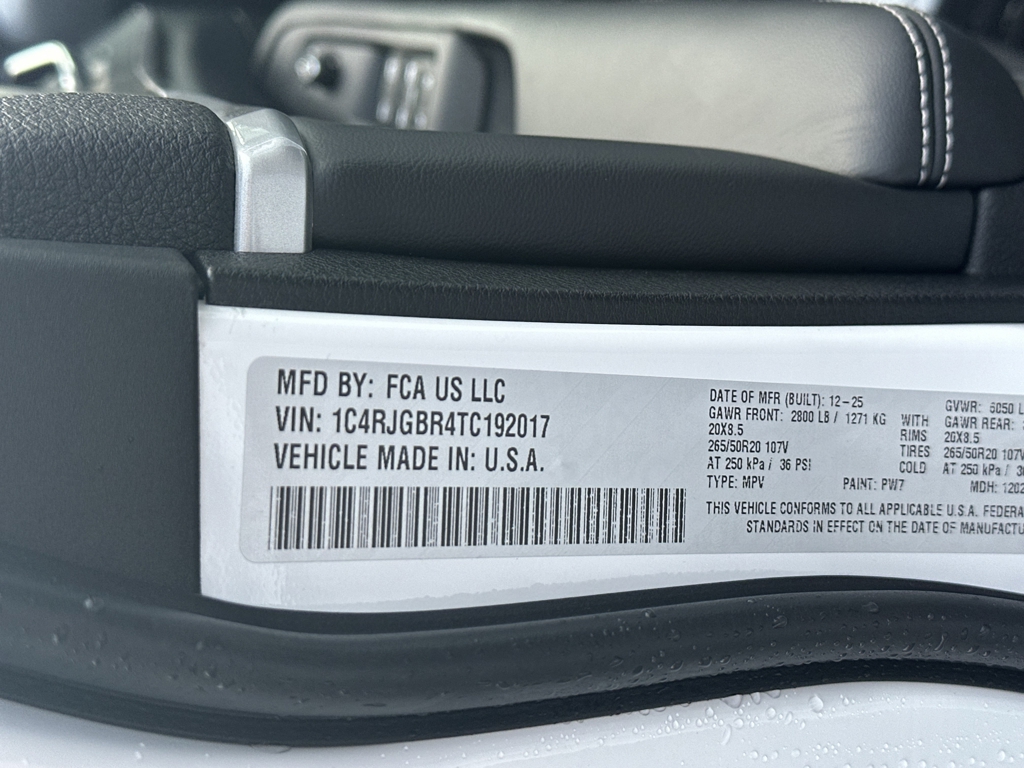 • VIN: 1C4RJGBR4TC192017