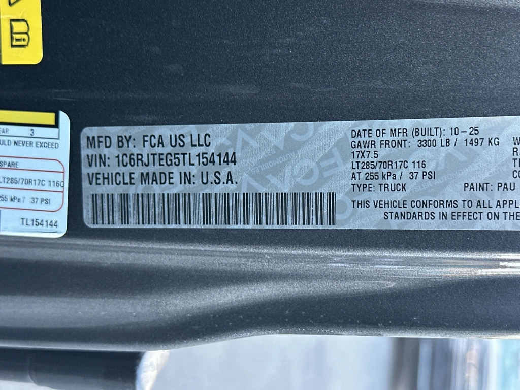 • VIN: 1C6RJTEG5TL154144