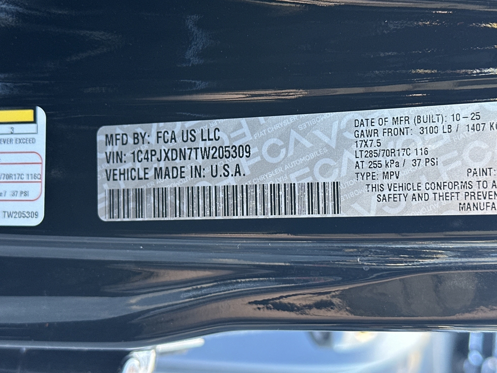• VIN: 1C4PJXDN7TW205309