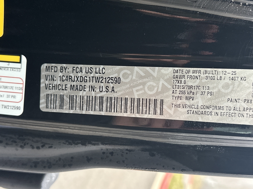 • VIN: 1C4RJXDG1TW212590