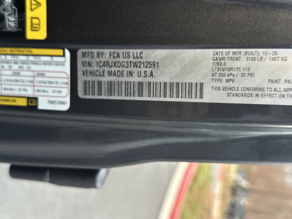 • VIN: 1C4RJXDG3TW212591