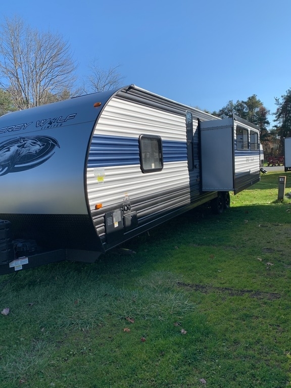 Actual photos of stock #31053. This is a used Rental Unit from Bayley's Campground in Maine. Unit has been well maintained. The Forest River Cherokee Grey Wolf 29TE combines the sleeping quantity of a bunkhouse with the quality of a couple's camper. If you want your family or guests to camp in style, look no further than the Grey Wolf 29TE!