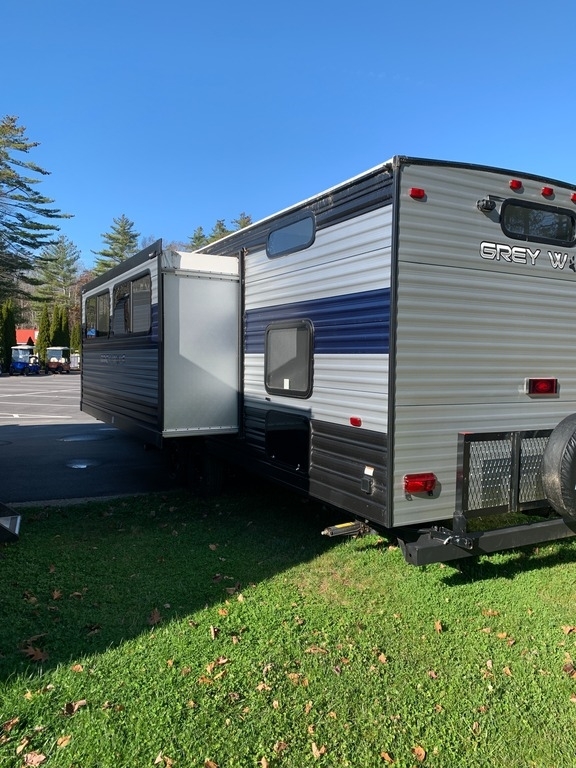 Actual photos of stock #31055. This is a used Rental Unit from Bayley's Campground in Maine. Unit has been well maintained. The Forest River Cherokee Grey Wolf 29TE combines the sleeping quantity of a bunkhouse with the quality of a couple's camper. If you want your family or guests to camp in style, look no further than the Grey Wolf 29TE!