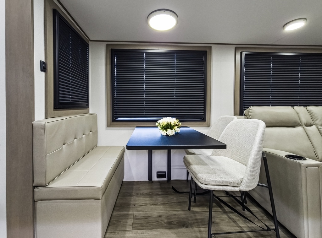 • SWIVEL DINETTE W/2 CHAIRS & STORAGE AND OTTOMAN