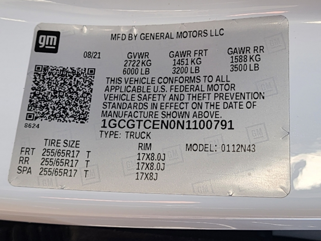 VIN Number: 1GCGTCEN0N1100791