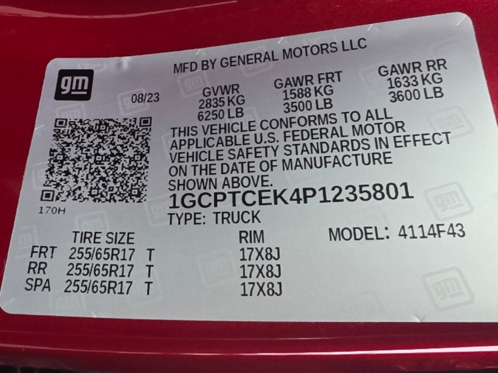 VIN Number: 1GCPTCEK4P1235801