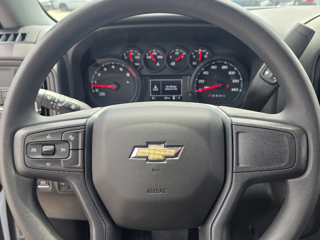 Summit White 2025 Chevrolet Silverado 3500HD Work Truck RWD 10-Speed Automatic 6.6L V8 10-Speed Automatic, Jet Black Vinyl.
