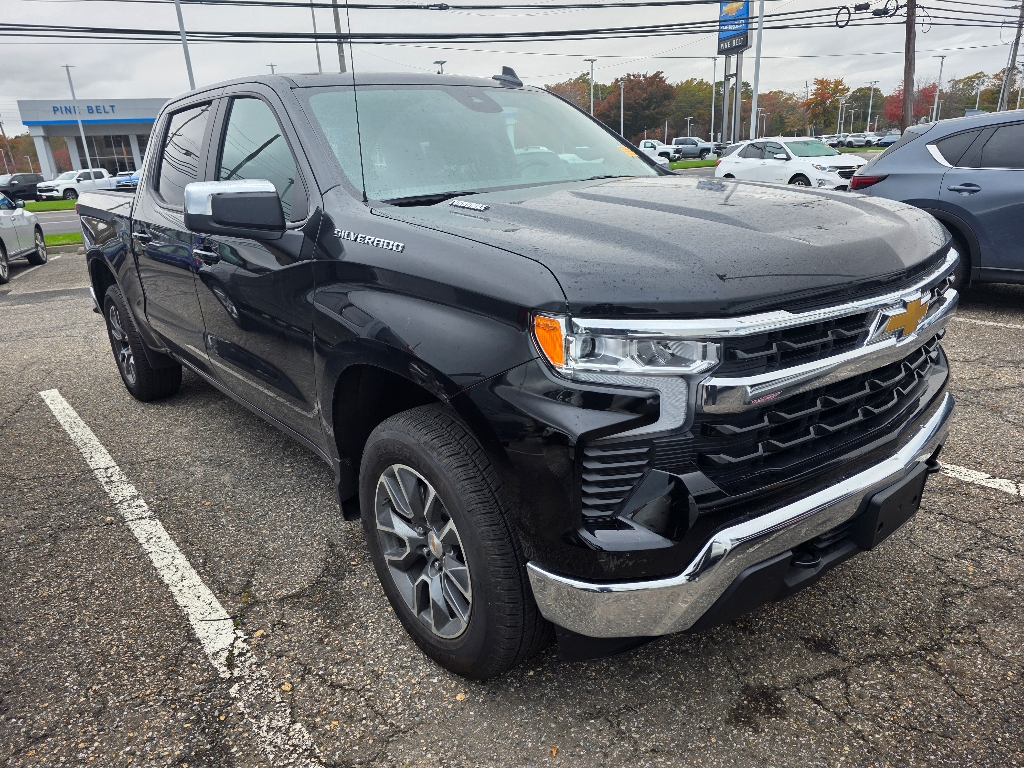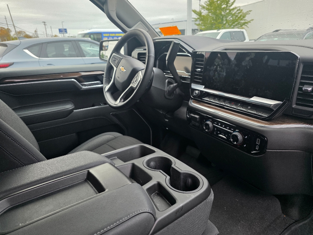 ONE OWNER, CLEAN VEHICLE HISTORY...NO ACCIDENTS, REMAINDER OF FACTORY WARRANTY, *LIFETIME ENGINE WARRANTY WITH PURCHASE*, 4D Crew Cab, 8-Speed Automatic, 4WD, Black Cloth, 10-Way Power Driver Seat w/Lumbar, 120-Volt Interior Power Outlet, AM/FM radio: SiriusXM with 360L, Apple CarPlay/Android Auto, Automatic temperature control, Bluetooth® For Phone, Convenience Package, Dual Rear USB Ports (Charge Only), Dual-Zone Automatic Climate Control, Electronic Cruise Control, Electronic Stability Control, Emergency communication system: OnStar, Heated door mirrors, Heated Driver & Front Outboard Passenger Seats, Heated Steering Wheel, High Capacity Suspension Package, Hitch Guidance, Keyless Open & Start, Lane Keep Assist w/Lane Departure Warning, LED Cargo Area Lighting, Manual Tilt/Telescoping Steering Column, OnStar Services Capable, SiriusXM w/360L Trial Subscription, Theft Deterrent System (Unauthorized Entry), Trailering Package, Variably intermittent wipers, Wi-Fi Hot Spot Capable, Wrapped Steering Wheel. Black 2025 Chevrolet Silverado 1500 LT
