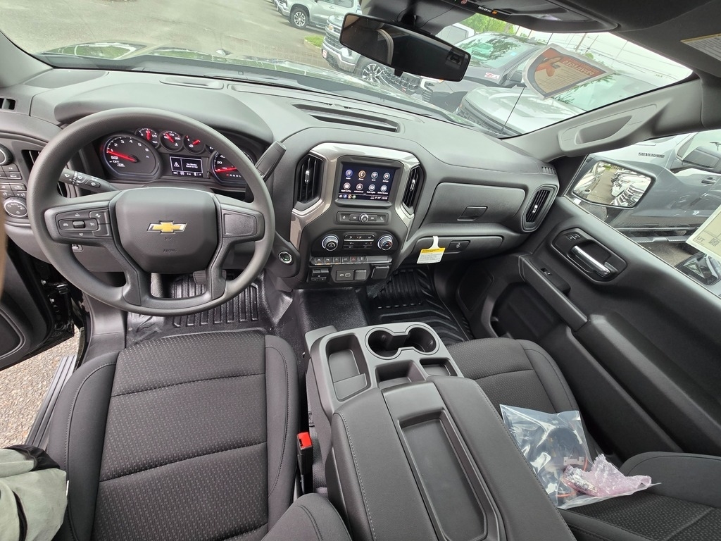 Black 2025 Chevrolet Silverado 1500 WT 4WD 10-Speed Automatic EcoTec3 5.3L V8 10-Speed Automatic, 4WD, Black Cloth.