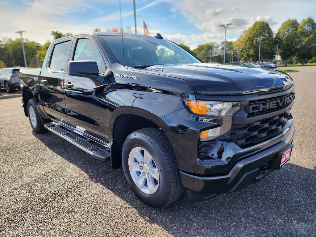 ONE OWNER, CLEAN VEHICLE HISTORY...NO ACCIDENTS, SERVICE RECORDS AVAILABLE, REMAINDER OF FACTORY WARRANTY, *LIFETIME ENGINE WARRANTY WITH PURCHASE*, 4D Crew Cab, 8-Speed Automatic, Black Cloth, All-Weather Floor Liner (LPO), Apple CarPlay/Android Auto, Black Manual Outside Mirrors, Bluetooth® For Phone, Electronic Cruise Control, Emergency communication system: OnStar, Fully automatic headlights, HD Rear Vision Camera, Heated Power-Adjustable Outside Mirrors, Hitch Guidance, Liner Protection Package (LPO), Locking Tailgate, OnStar Services Capable, Preferred Equipment Group 1WT, Rear 60/40 Folding Bench Seat (Folds Up), Rear Wheel House Liners (LPO), Remote Keyless Entry, SiriusXM Delete, Solar Absorbing Tinted Glass, Standard Suspension Package, Standard Tailgate, Teen Driver, Trailering Package, WT Convenience Package, WT Value Package. Black 2025 Chevrolet Silverado 1500 WT