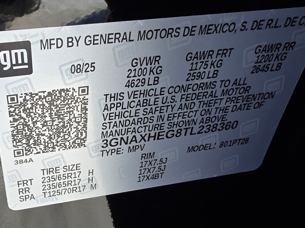 • VIN Number: 3GNAXHEG8TL238360