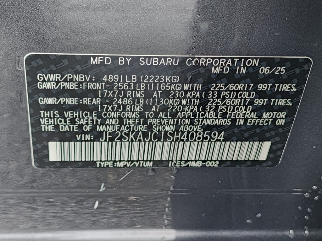 • VIN: JF2SKAJC1SH408594