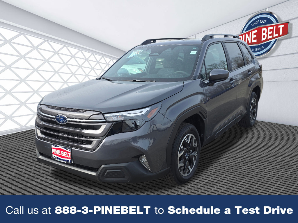 Price: $32,981.00 Market Value: $34,454.00 2026 Subaru Forester Premium VIN: 4S4SLDD61T3050958 Stock: 26S0375 Mileage: 3 Color: Crimson Red Pearl Trans: Lineartronic CVT Engine: 2.5L 4-Cylinder DOHC 16V MPG: 26 City / 33 Highway Drivetrain: AWD This low mileage Subaru was part of our FREE service loaner fleet - a NO CHARGE perk for Pine Belt Subaru customers! We provide these cars as a courtesy to our customers while their Subaru is in for routine maintenance. These cars are carefully checked in & out by our service staff, so you can be sure they're well cared for. Subaru Details: * Powertrain Limited Warranty: 84 Month/100,000 Mile (whichever comes first) from original in-service date * SiriusXM 3-Month trial subscription, $500 Owner Loyalty coupon & 1 year trial subscription to STARLINK * 152 Point Inspection * Warranty Deductible: $0 * Transferable Warranty * Roadside Assistance * Vehicle History. Dark Mahogany Pearl 2026 Subaru Forester Premium Pine Belt Enterprises, Inc. Proudly offers you the highest quality vehicles that represent the best value ANYWHERE, comprehensive warranty options, financing from multiple banks and sources, free Carfax reports, and will even bring any one of our vehicles to you for a test drive. Contact Us Credit Application Power Rear Gate And Blind Spot Detection With Rear Cross Traffic Alert 6 Speakers AM/FM Radio: Siriusxm With 360L Radio Data System Radio: Subaru 11.6" Multimedia Plus System Air Conditioning Automatic Temperature Control Front Dual Zone A/C Rear Window Defroster Power Driver Seat Power Rear Gate Power Steering Power Windows Remote Keyless Entry Steering Wheel Mounted Audio Controls Four Wheel Independent Suspension Speed-Sensing Steering Traction Control 4-Wheel Disc Brakes ABS Brakes Anti-Whiplash Front Head Restraints Dual Front Impact Airbags Dual Front Side Impact Airbags Emergency Communication System: Mysubaru Companion (5-Years Free) Front Anti-Roll Bar Knee Airbag Low Tire Pressure Warning Occupant Sensing Airbag Overhead Airbag Rear Anti-Roll Bar Power Moonroof: Panoramic Brake Assist Electronic Stability Control Exterior Parking Camera Rear Auto High-Beam Headlights Front Fog Lights Fully Automatic Headlights Panic Alarm Security System Speed Control Auto-Dimming Exterior Mirror With Approach Light Bumpers: Body-Color Heated Door Mirrors Power Door Mirrors Spoiler Auto-Dimming Mirror With Compass And Homelink Automatic Emergency Steering Blind-Spot Detection (BSD)/RCTA System Driver Door Bin Driver Vanity Mirror Emergency Lane Keep Assist Front Reading Lights Illuminated Entry Leather Steering Wheel Outside Temperature Display Overhead Console Passenger Vanity Mirror Rear Seat Center Armrest Tachometer Telescoping Steering Wheel Tilt Steering Wheel Trip Computer Front Bucket Seats Front Center Armrest Heated Front Bucket Seats Heated Front Seats Premium Textured Cloth Upholstery Split Folding Rear Seat Cargo Net Passenger Door Bin Alloy Wheels Wheels: 17" X 7.0 J Dark Metallic Aluminum-Alloy Rear Window Wiper Variably Intermittent Wipers .......... 2026 Subaru Forester Premium Options