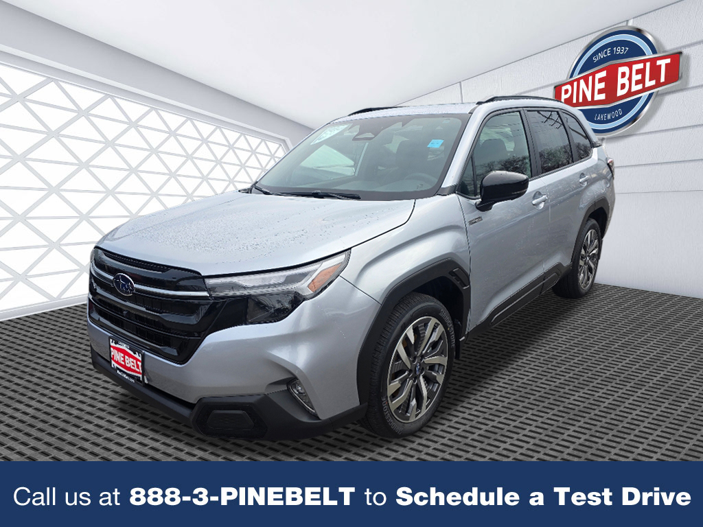 Price: $42,808.00 Market Value: $42,808.00 2025 Subaru Forester Hybrid Touring VIN: JF2SLSTD8SH412988 Stock: R412988 Mileage: 2,207 Color: White Trans: Lineartronic CVT Engine: 2.5L 4-Cylinder DOHC 16V MPG: Drivetrain: AWD Explore our vehicle with a squeaky-clean Carfax report. With meticulous care and unwavering attention to detail, this remarkable vehicle boasts a Carfax report that is blemish-free and ready for you to enjoy. Plus, it's not just a vehicle "“ it's a Pine Belt vehicle! CLEAN VEHICLE HISTORY...NO ACCIDENTS, REMAINDER OF FACTORY WARRANTY, *LIFETIME ENGINE WARRANTY WITH PURCHASE*, 2.5L 4-Cylinder DOHC 16V, AWD, AM/FM radio: SiriusXM with 360L, Automatic temperature control, Electronic Stability Control, Exterior Parking Camera Rear, Front dual zone A/C, Front fog lights, Fully automatic headlights, Navigation system: TomTom Navigation w/what3words, Perforated Leather-Trimmed Upholstery, Power Liftgate, Power moonroof: Panoramic, Remote keyless entry, Variably intermittent wipers. Crystal White Pearl 2025 Subaru Forester Hybrid Touring Pine Belt Enterprises, Inc. Proudly offers you the highest quality vehicles that represent the best value ANYWHERE, comprehensive warranty options, financing from multiple banks and sources, free Carfax reports, and will even bring any one of our vehicles to you for a test drive. Contact Us Credit Application Navigation System: Tomtom Navigation W/What3words Standard Model 11 Speakers AM/FM Radio: Siriusxm With 360L Harman/Kardon® Speakers Radio Data System Radio: Subaru STARLINK 11.6" Multimedia Nav System Air Conditioning Automatic Temperature Control Front Dual Zone A/C HVAC Memory Rear Window Defroster Memory Seat Power Driver Seat Power Steering Power Windows Remote Keyless Entry Steering Wheel Mounted Audio Controls Four Wheel Independent Suspension Speed-Sensing Steering Traction Control 4-Wheel Disc Brakes ABS Brakes Anti-Whiplash Front Head Restraints Dual Front Impact Airbags Dual Front Side Impact Airbags Emergency Communication System: STARLINK Safety And Security (Subscription Required) Front Anti-Roll Bar Knee Airbag Low Tire Pressure Warning Occupant Sensing Airbag Overhead Airbag Rear Anti-Roll Bar Power Moonroof: Panoramic Power Liftgate Brake Assist Electronic Stability Control Exterior Parking Camera Rear Auto High-Beam Headlights Front Fog Lights Fully Automatic Headlights Panic Alarm Security System Speed Control Auto-Dimming Exterior Mirror W/Approach Light Bumpers: Body-Color Door Projector Lights Heated Door Mirrors Power Door Mirrors Rear Bumper Cover Splash Guards Spoiler Turn Signal Indicator Mirrors Compass Driver Door Bin Driver Vanity Mirror Footwell Illumination Kit Front Reading Lights Heated Steering Wheel Illuminated Entry LED Upgrade Outside Temperature Display Overhead Console Passenger Vanity Mirror Rear Seat Center Armrest STARLINK/Apple Carplay/Android Auto Tachometer Telescoping Steering Wheel Tilt Steering Wheel Trip Computer Front Bucket Seats Front Center Armrest Heated & Ventilated Front Bucket Seats Heated Front Seats Heated Rear Seats Perforated Leather-Trimmed Upholstery Power Passenger Seat Split Folding Rear Seat Ventilated Front Seats Cargo Tray Passenger Door Bin Alloy Wheels Wheels: 19" X 7.5 J Dark Gray Aluminum-Alloy Rear Window Wiper Variably Intermittent Wipers .......... CLEAN VEHICLE HISTORY...NO ACCIDENTS REMAINDER OF FACTORY WARRANTY *LIFETIME ENGINE WARRANTY WITH PURCHASE* 2025 Subaru Forester Hybrid Touring Options
