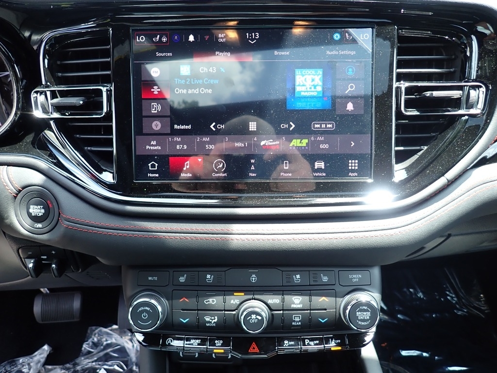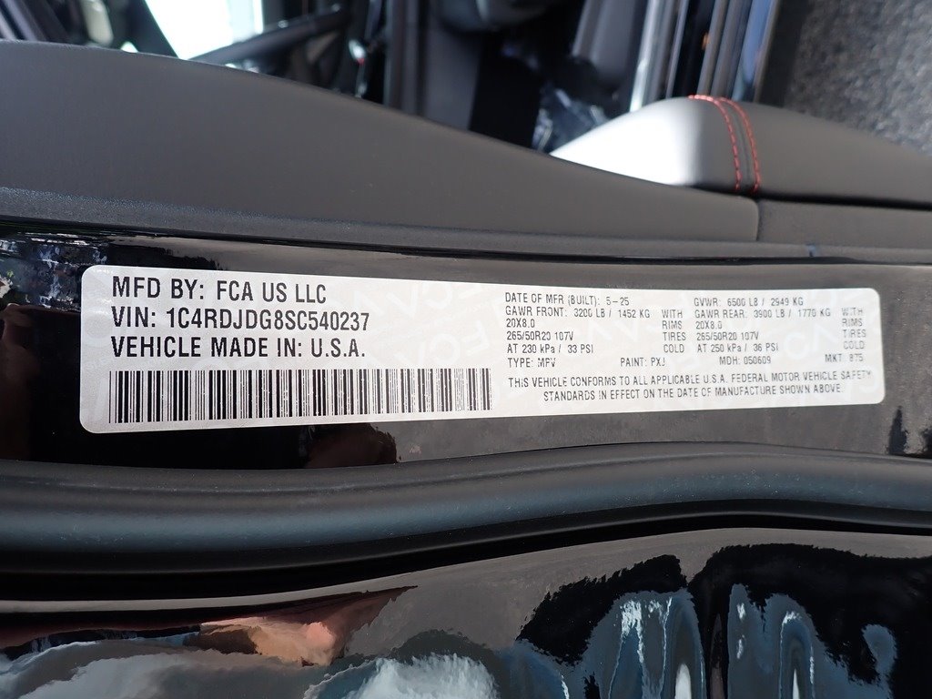 DB Black Crystal Clearcoat 2025 Dodge Durango GT Plus AWD 8-Speed Automatic 3.6L V6 24V VVT AWD, #6 Seat Foam Cushion, 115V Auxiliary Power Outlet, 180 Amp Alternator, 2nd Row Fold/Tumble Captain Chairs, 2nd Row Mini Console w/Cupholders, 2nd Row Seat Mounted Inboard Armrests, 3rd Row Floor Mat & Mini Console, 506 Watt Amplifier, 6-Passenger Seating, 7 & 4 Pin Wiring Harness, 9 Alpine Amplified Speakers w/Subwoofer, Adaptive Cruise Control w/Stop, Advanced Brake Assist, Auto High Beam Headlamp Control, Auto-Dimming Exterior Driver Mirror, Black Roof Rails, Blacktop Leather SRT Performance Seats, Blacktop Redline Package, Blind Spot w/Trailer Detection, Bright Cargo Area Scuff Pads, Bright Front Door Sill Scuff Pads, Class IV Receiver Hitch, Crypto Sweep Etch Accents, Dual Remote USB Port - Charge Only, Exterior Mirrors w/Heating Element, Exterior Mirrors w/Memory, Exterior Mirrors w/Supplemental Signals, Floor Console w/Leather Armrest, Full Speed Forward Collision Warning Plus, Gloss Black Badges, Gloss Black Exterior Mirrors, GT Decal w/Red Tracer, Heated Second Row Seats, Heavy-Duty Engine Cooling, Integrated Roof Rail Crossbars, Lane Departure Warning Plus, Leather Trimmed Bucket Seats, Leather Wrapped Door Panels, LED Auxiliary Low Beam & Turn Signal, Navigation System, ParkSense Front/Rear Park Assist w/Stop, Performance Hood, Power 6x9 Multi-Function Foldaway Mirrors, Power 8-Way Driver Memory 8-Way Passenger Seats, Power Driver/Passenger 4-Way Lumbar Adjust, Power Sunroof, Power Tilt & Telescopic Steering Column, Premium Door Trim Panel, Premium Instrument Panel, Quick Order Package 2BH GT Plus, Radio/Driver Seat/Mirrors Memory, Rain Sensitive Windshield Wipers, Rear Load Leveling Suspension, Red Accent Stitching, Satin Black Dodge Tail Lamp Badge, Security Alarm, Sun Visors w/Illuminated Vanity Mirrors, Trailer Brake Control, Ventilated Front Seats, Wheels: 20" x 8.0" Black Noise Aluminum, Wireless Charging Pad.