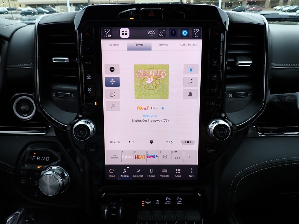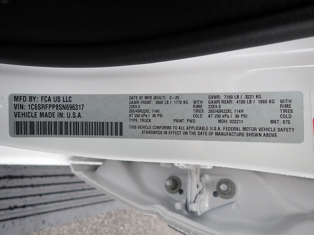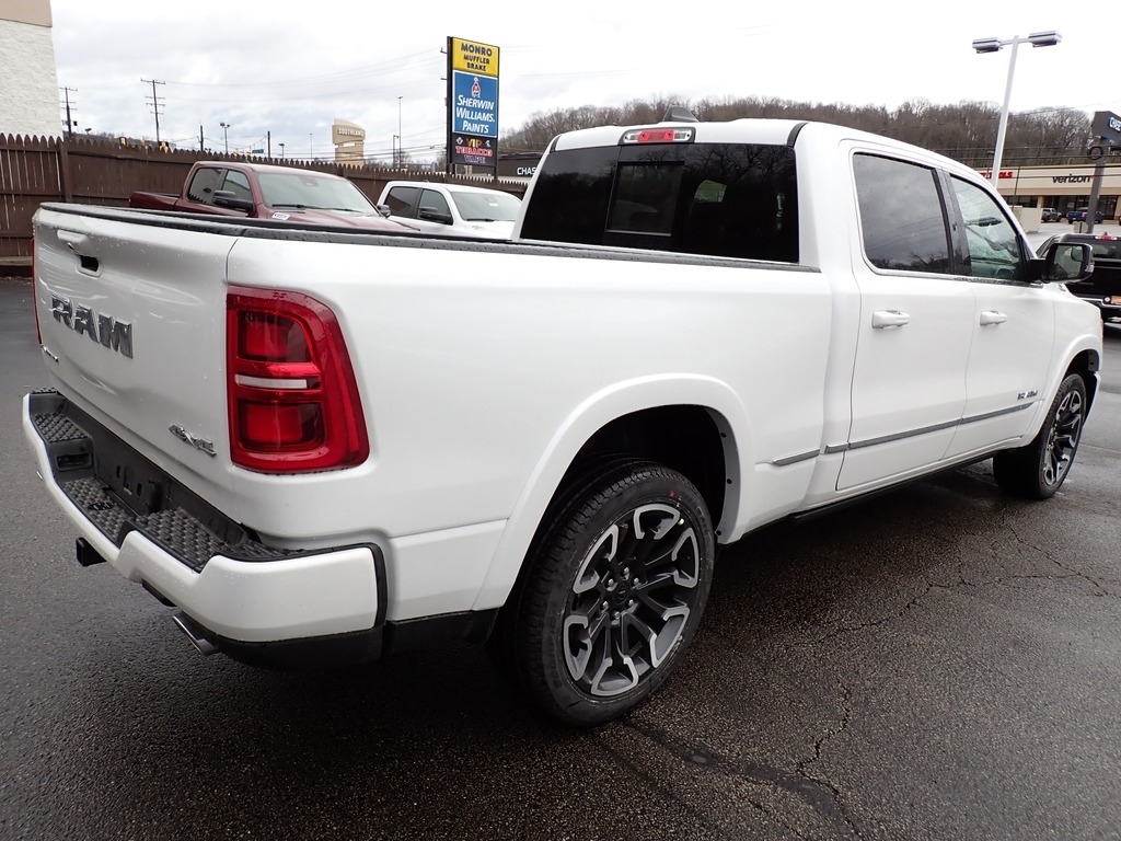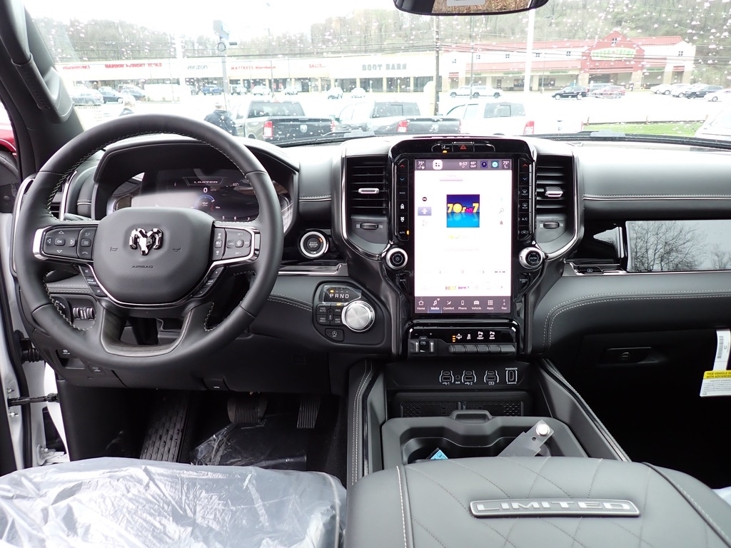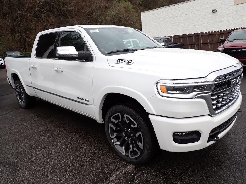 Ivory White Tri-Coat Pearlcoat 2025 Ram 1500 Limited 4WD 8-Speed Automatic 3.0L I6 Dual Zone Climate Control, Rain Sensing Wipers, Auto-dimming Rear-View mirror, Fully Automatic Headlights, Heated / Ventilated Front And Rear Seats, Genuine Wood Trim, Auto-leveling suspension, Dual-Pane Panoramic Sunroof, 4G LTE Wi-Fi Hot Spot, AM/FM radio: SiriusXM with 360L, Apple CarPlay/Android Auto, Auto Power-Folding Mirrors, Auto-dimming door mirrors, Auto-Dimming Exterior Driver Mirror, Auto-dimming Rear-View mirror, Auto-leveling suspension, Automatic temperature control, Bed Utility Group, Body Color Bumper Group, Body Color Front Bumper, Body Color Rear Bumper w/Step Pads, Dome Dual LED Reading Lamp, Dual-Pane Panoramic Sunroof, Exterior 115V AC Outlet, Exterior Mirrors Courtesy Lamps, Exterior Mirrors w/Heating Element, Exterior Mirrors w/Supplemental Signals, Front dual zone A/C, Front fog lights, Fully automatic headlights, Genuine wood console insert, Genuine wood dashboard insert, Genuine wood door panel insert, GPS Navigation, Heated door mirrors, Heated front seats, Heated rear seats, Heated steering wheel, Illuminated entry, LED Dome/Reading Lamp, Memory seat, MOPAR 4 Adjustable Cargo Tie-Down Hooks, Navigation System, Overhead console, ParkView Rear Back-Up Camera, Pedal memory, Pirelli Brand Tires, Quick Order Package 22M Limited, Remote keyless entry, Steering wheel mounted audio controls, Ventilated front seats, Ventilated rear seats.