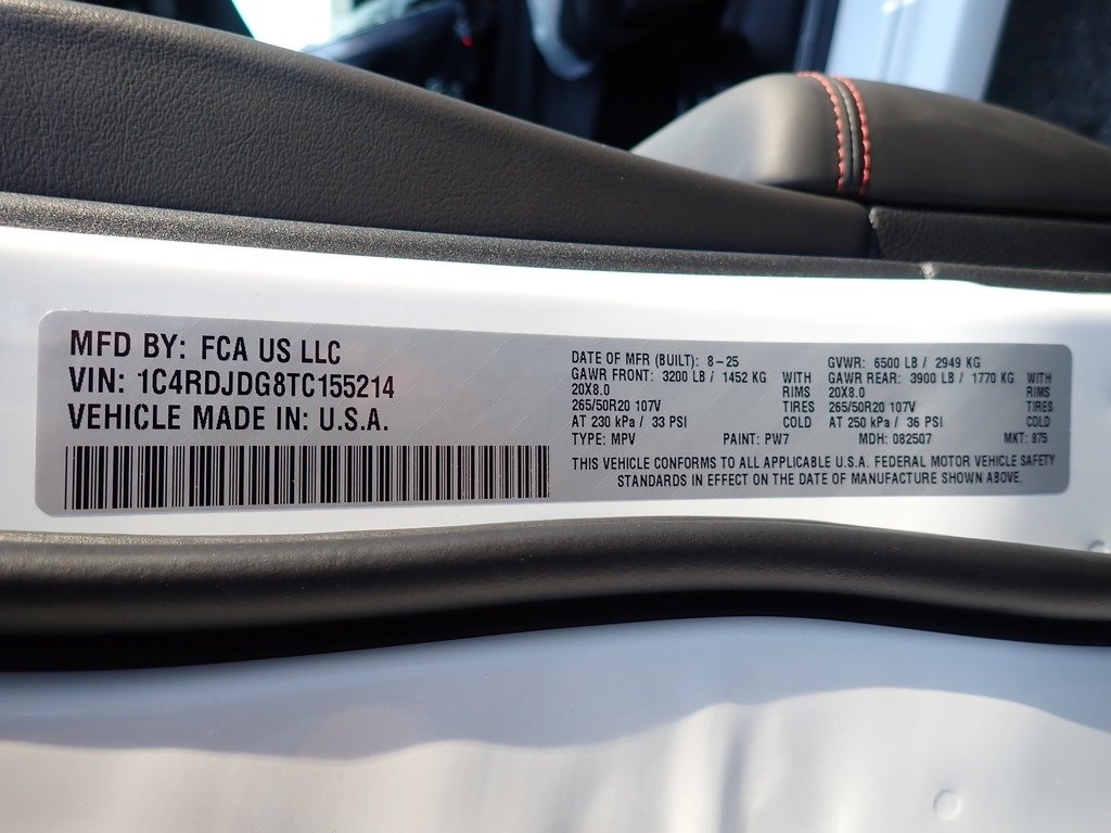 White Knuckle Clearcoat 2026 Dodge Durango GT Plus AWD 8-Speed Automatic 3.6L V6 24V VVT AWD, 115V Auxiliary Power Outlet, 180 Amp Alternator, 2nd Row Fold/Tumble Captain Chairs, 2nd Row Mini Console w/Cupholders, 2nd Row Seat Mounted Inboard Armrests, 3rd Row Floor Mat & Mini Console, 506 Watt Amplifier, 6-Passenger Seating, 7 & 4 Pin Wiring Harness, 9 Alpine Amplified Speakers w/Subwoofer, Adaptive Cruise Control w/Stop, Advanced Brake Assist, Auto High Beam Headlamp Control, Auto-Dimming Exterior Driver Mirror, Black Roof Rails, Blacktop Leather SRT Performance Seats, Blacktop Redline Package, Blind Spot w/Trailer Detection, Bright Cargo Area Scuff Pads, Crypto Sweep Etch Accents, Dual Remote USB Port - Charge Only, Exterior Mirrors w/Heating Element, Exterior Mirrors w/Memory, Exterior Mirrors w/Supplemental Signals, Floor Console w/Leather Armrest, Full Speed Forward Collision Warning Plus, Gloss Black Badges, Gloss Black Exterior Mirrors, GT Decal w/Red Tracer, Heated Second Row Seats, Heavy-Duty Engine Cooling, Integrated Roof Rail Crossbars, Lane Departure Warning Plus, Leather Trimmed Bucket Seats, Leather Wrapped Door Panels, LED Auxiliary Low Beam & Turn Signal, Navigation System, ParkSense Front/Rear Park Assist w/Stop, Performance Hood, Performance Lower Splitter, Power 6x9 Multi-Function Foldaway Mirrors, Power 8-Way Driver Memory 8-Way Passenger Seats, Power Driver/Passenger 4-Way Lumbar Adjust, Power Sunroof, Power Tilt & Telescopic Steering Column, Premium Door Trim Panel, Premium Instrument Panel, Quick Order Package 2BH GT Plus, Rear Load Leveling Suspension, Red Accent Stitching, Satin Black Dodge Tail Lamp Badge, Security Alarm, SRT Rear Spoiler, Sun Visors w/Illuminated Vanity Mirrors, Ventilated Front Seats, Wheels: 20" x 8" Black Noise Aluminum, Wireless Charging Pad.