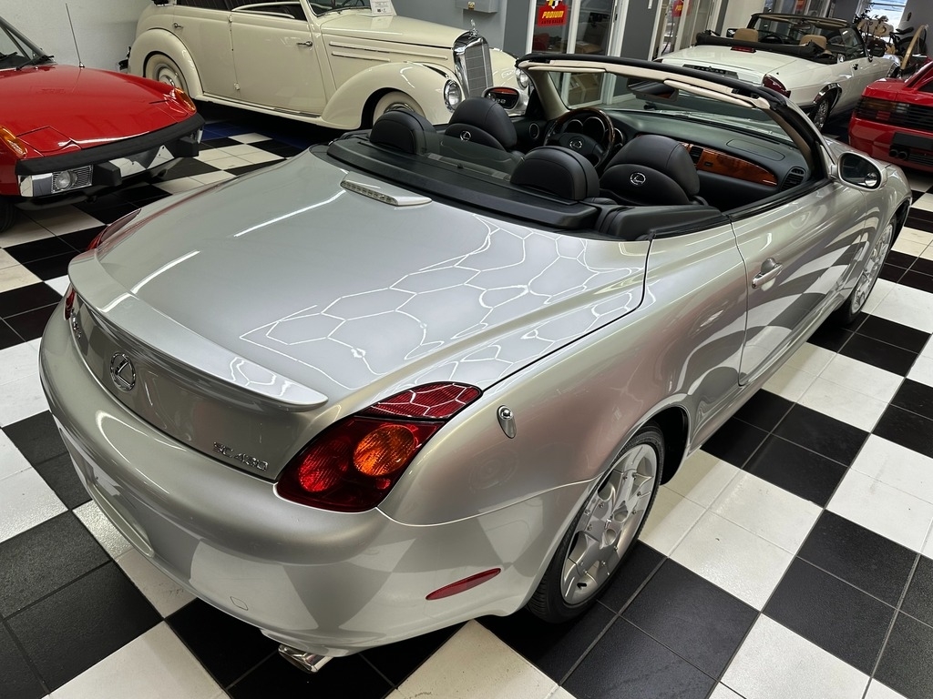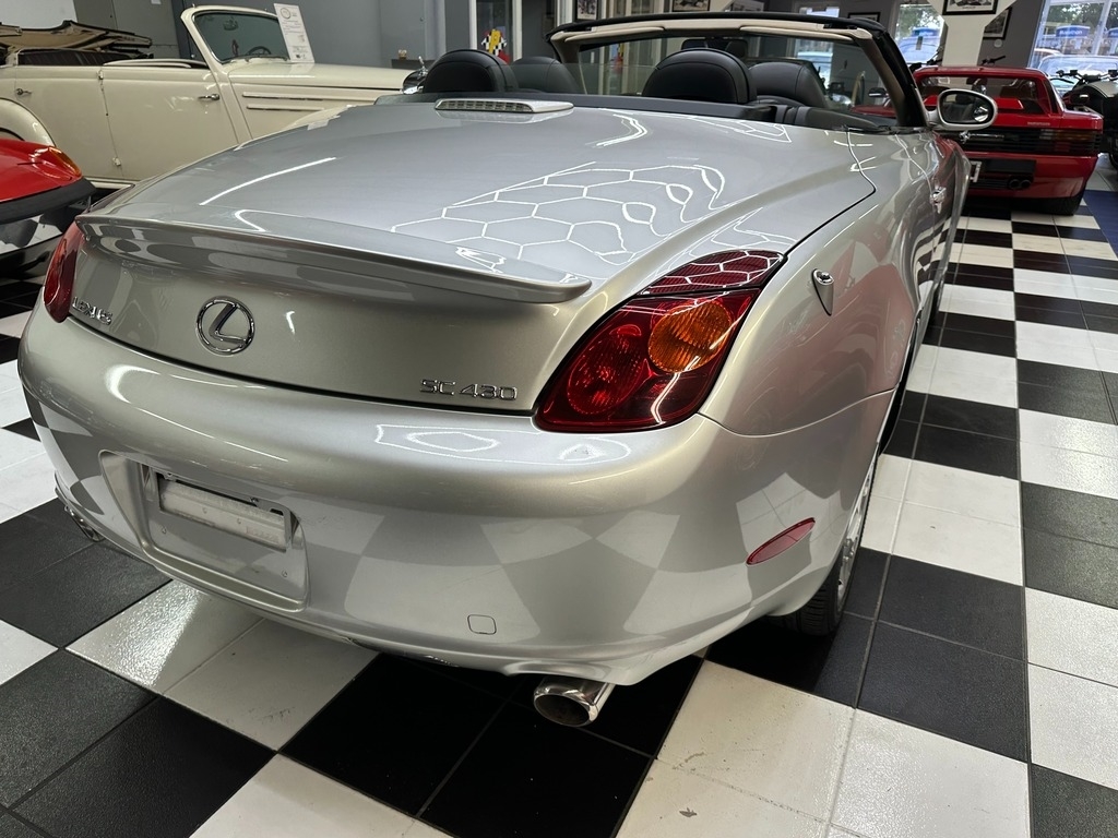 The color combination on this SC 430 makes it really stand out from the others. The MILLENIUM SILVER METALLIC looks stunning on this SC 430 and it has maintained its deep, rich and high gloss shine. The interior greets you with stunning BLACK Leather that is extremely elegant and soft. The dash is a true expression of traditional Japanese design, ergonomically correct, and a sports car driver's paradise when combined with Premium Leather Seats and reliable 4.3L 32-Valve V8 Engine with the 5-Speed Automatic Transmission.