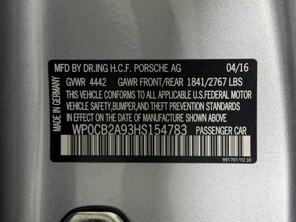 ๐ŸŒŸ 2017 Porsche 911 Carrera 4S Cabriolet - $114,495 Offered with balance of current Porsche Factory CPO Warranty which expires on December 09, 2027. Paint Protection Film on the front end Open-air exhilaration meets all-wheel-drive confidence in this stunning 2017 Porsche 911 Carrera 4S Cabriolet (991.2). Finished in timeless GT Silver Metallic over Black Leather Interior with a Black Cabriolet Roof, this highly optioned example carried an original MSRP of $160,140. This is not just a 911 โ€” this is a meticulously configured driverโ€™s car with premium performance upgrades and rare options. โšก Twin-Turbo Performance. Iconic Handling. 3.0L Twin-Turbo Flat-Six 420 Horsepower Porsche Doppelkupplung (PDK) All-Wheel Drive (Carrera 4S) Sport Chrono Package Sport Exhaust System Rear Axle Steering Porsche Ceramic Composite Brakes (PCCB) With PCCB and Rear Axle Steering, this Cabriolet delivers razor-sharp response and braking performance typically reserved for Porscheโ€™s most elite models. ๐Ÿ Sport Package Highlights This example is equipped with the coveted Sport Package, including: SportDesign Exterior Mirrors Rear Axle Steering Sport Chrono Sport Exhaust GT Sport Steering Wheel Built for drivers who demand precision and emotion in every corner. ๐Ÿ–ค Sophisticated Interior Configuration Leather Interior in Black Carbon Fiber Interior Package Porsche Crest on Headrests Racing Yellow Sport Chrono Clock Dial 14-Way Power Sport Seats with Memory Heated & Ventilated Front Seats BOSEยฎ Surround Sound System A clean, performance-focused interior with subtle motorsport-inspired accents. ๐ŸŒŸ Premium Equipment Premium Package Plus LED Headlights with PDLS+ Porsche Entry & Drive Light Design Package Auto-Dimming Mirrors Power Steering Plus 20" RS Spyder Design Wheels Colored Porsche Crest Wheel Caps Every detail was thoughtfully selected to enhance both luxury and driving dynamics. ๐Ÿ”ฅ Why This 911 Stands Out โœ” Highly Optioned ($160K MSRP) โœ” Desirable 4S All-Wheel Drive Configuration โœ” PCCB โ€“ A Rare & Expensive Performance Upgrade โœ” Rear Axle Steering โœ” Timeless GT Silver over Black Spec โœ” Porsche Certified Pre-Owned Protection ๐Ÿ† The Ultimate Everyday Supercar The 991.2 Carrera 4S Cabriolet blends classic 911 DNA with modern turbocharged performance and everyday usability. Roof down, sport exhaust open โ€” this is the sound and sensation that define Porsche ownership. ๐Ÿ“ž Contact us today to schedule your private showing or test drive. Pure Porsche. Open Sky. No Compromises.