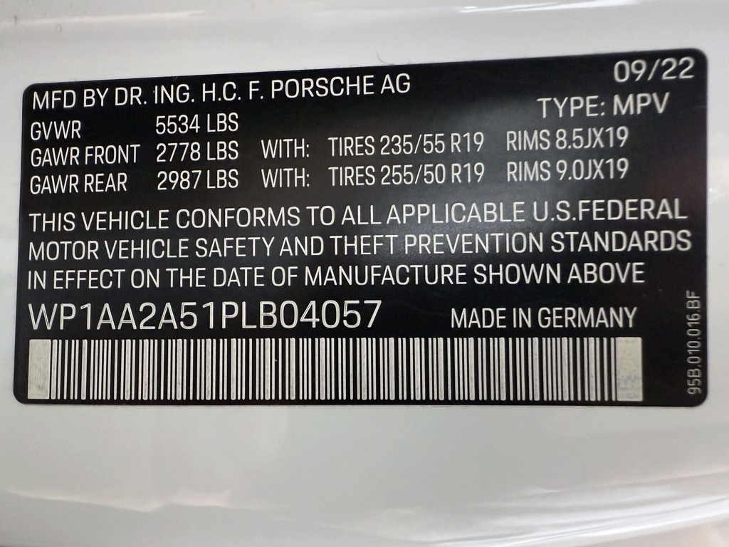• VIN Number: WP1AA2A51PLB04057