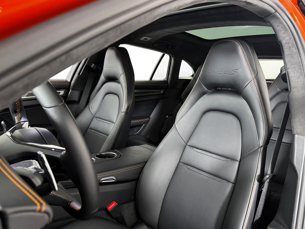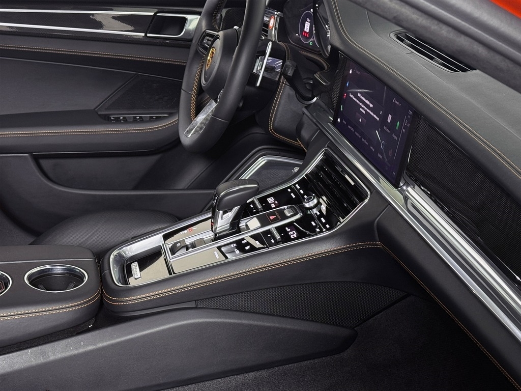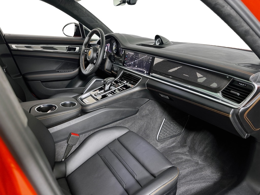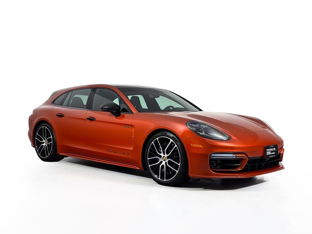 2023 Porsche Panamera S E Hybrid Sport Turismo PDK Automatic Transmission, Papaya Metallic with Black Leather Interior. 19,842 miles.