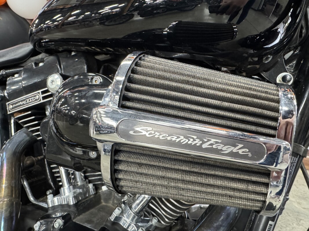 We’ve taken everything that was great about the Softail Slim® and added a little more.For starters, we’ve added power with a Screamin’ Eagle® Twin Cam 110™ engine. We’ve taken the military theme even further with an awesome olive green paint option and made the rest black to the core. Black triple clamp and riser, gloss black headlamp ring, fork slidercovers and lower forks. Black brake levers, mirrors and black over/under shotgun exhaustwith slash-cut muffler. Every inch is modern power with old iron attitude. Looking for bigger, better and bolder? You got it.
