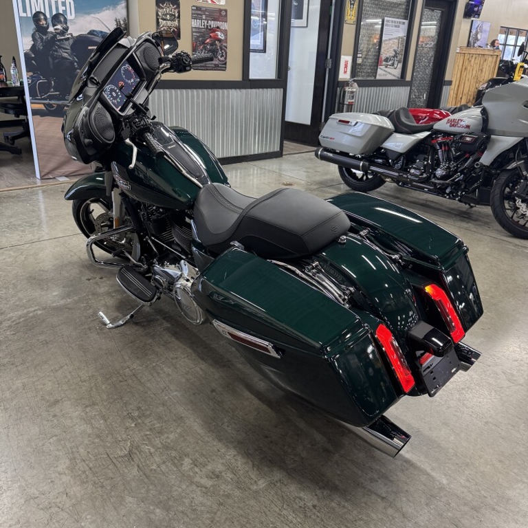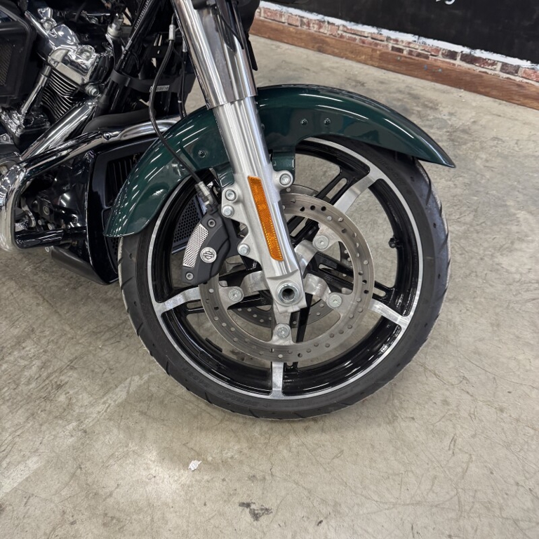 The iconic batwing fairing takes on new life with a sculpted silhouette, fully integrated LED lighting, and a split-stream vent opening. Using computational fluid dynamics (CFD), the Street Glide fairing has been designed to optimize aerodynamic efficiency and enhance rider comfort.