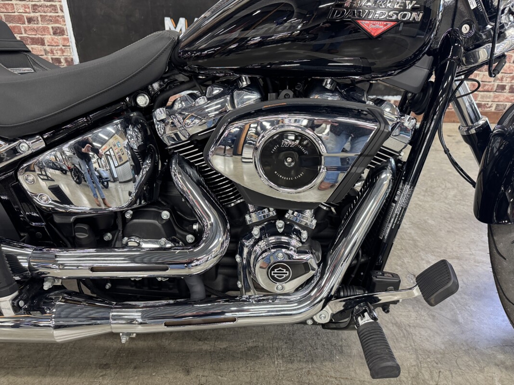 With a wide rear tire, bobtail rear fender, long rake, straight handlebars, and a 21-inch front wheel, the Breakout marries classic chopper style with the performance of a Milwaukee-Eight® 117 Custom powertrain.