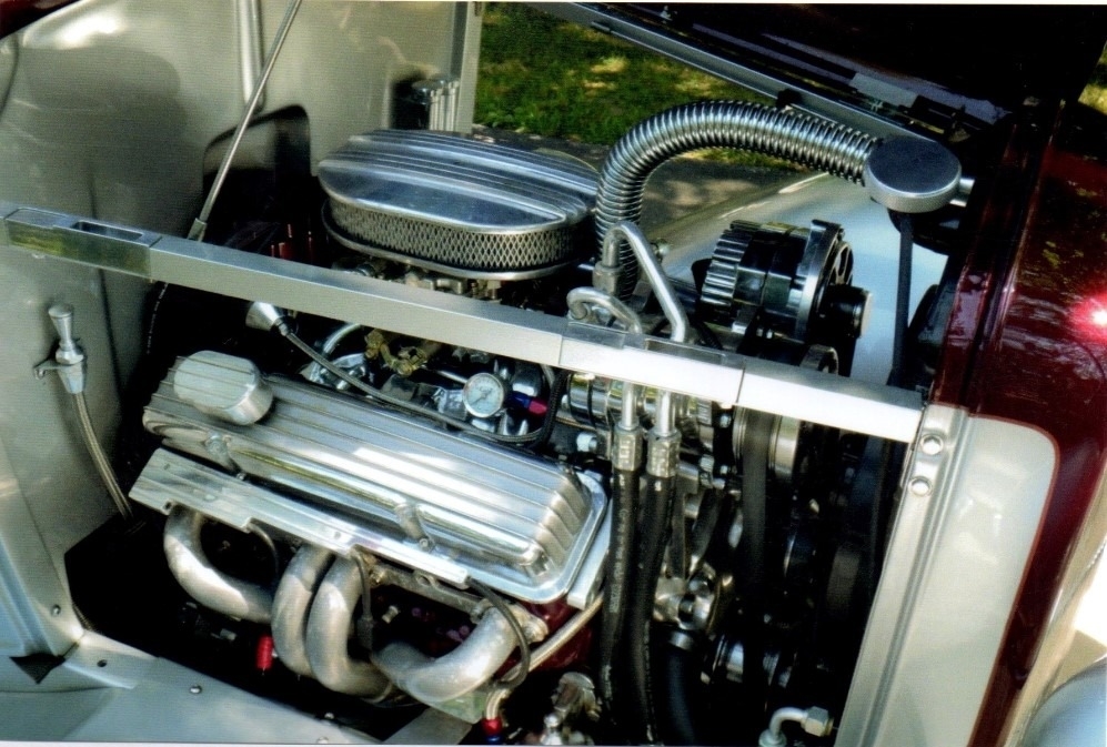 Engine & Drive Train: Pete & Jake's complete front end, tube axle chrome and front spreader bar, Unisteer Rack and Pinion (polished), duel master cylinder with booster, aluminium Currie rear end +355 gears, Wilwood brakes, 350 Crate engine, Edelbrock carb, cyclone sbc intake, headers, engine pulleys polished aluminum, s.s exhaust, chrome alternator and starter, 3 speed automatic transmission with cooler