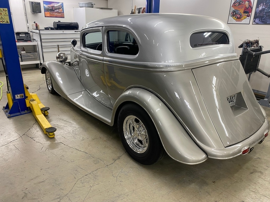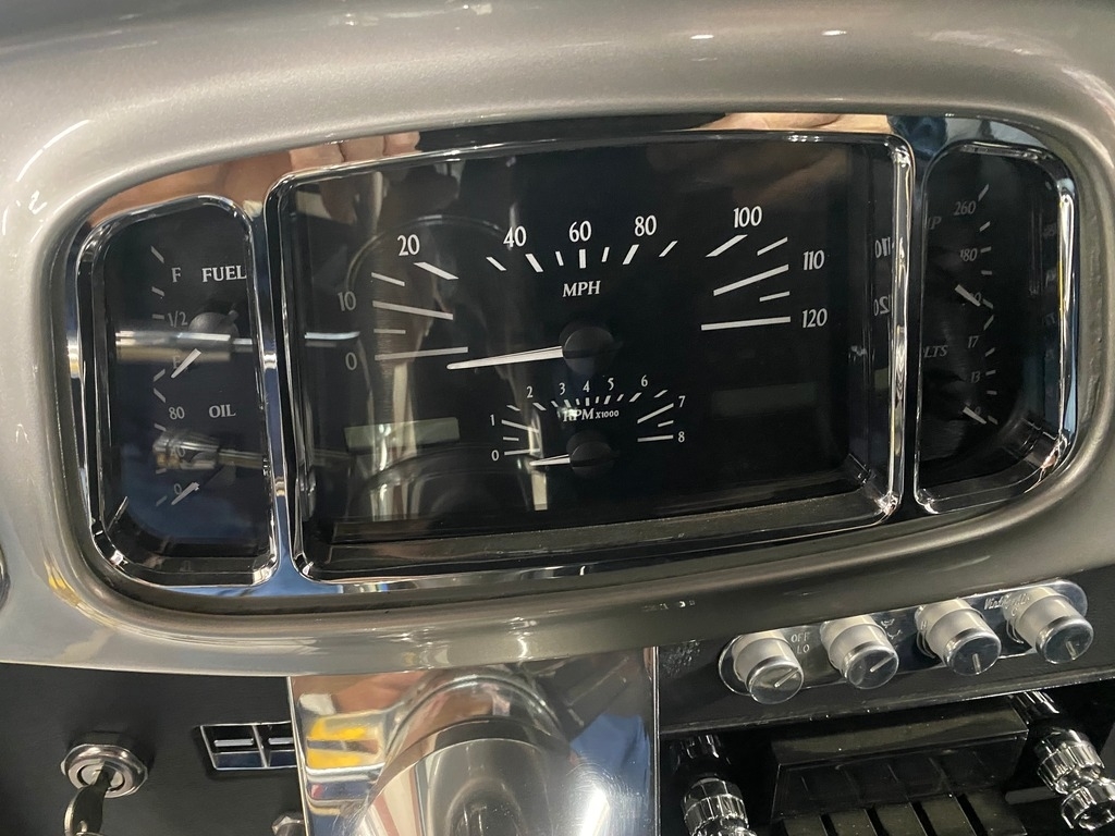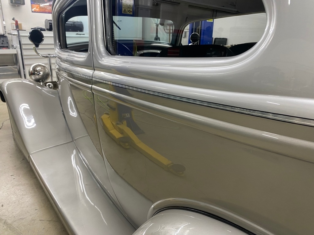 Driver show car. Original steel body with fiberglass fenders and running boards. Suicide doors with electric openers and electric windows. Black interior with new Dakota dash swing gauge. Lots of chrome parts as well. Vintage air conditioning. Rack and pinion steering. Custom polished aluminum wheels with knock offs. Polished aluminum fuel tank. Polished stainless exhaust. Looks stunning with two tone silver paint and silver metal leaf pin stripping. Drives like a dream.