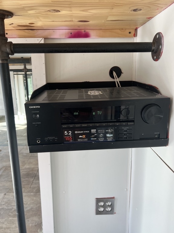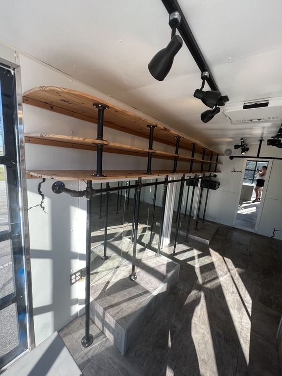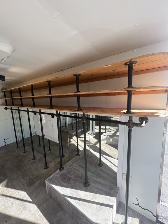 14ft. Wall Mounted Shelving on top of Industrial Style Black Metal Pipe Rod on both sides