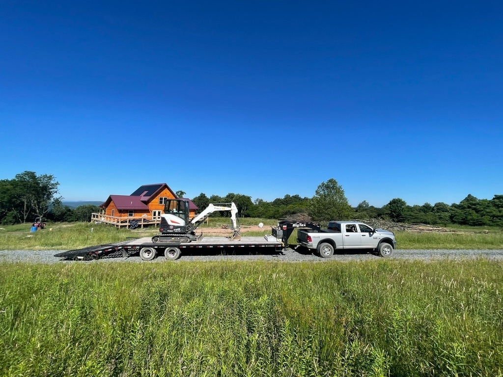 This does have mega ramps which will spoil you when loading and unloading equipment. This trailer was originally from Texas. It was pulled about 1000 miles with the previous owner and about 500 with me. Oil bath hubs, mega ramps, tandem axle duel wheel, gooseneck. It also has an electric 8,000lb winch mounted to the front of the gooseneck. It’s never been used. It was originally intended to be a car hauler. I used it to pull my rubber track mini excavator. It handles it perfectly. Im only selling to downgrade. This trailer is too long to maneuver in the mountains of West Virginia.