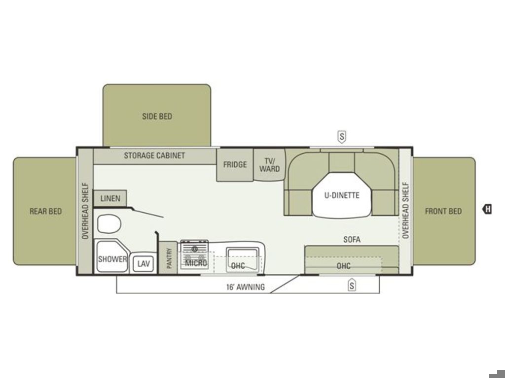 78" ceiling height Cable support bunk end system (1,100-lb. capacity) Corrosion-resistant frame Crowned truss roof Insulation (R-7 in roof, floor and walls) One-piece, seamless rubber roof material Screwed stile cabinetry with hardwood stiles TuffShell vacuum-bonded sidewalls Welded tubular-aluminum sidewalls