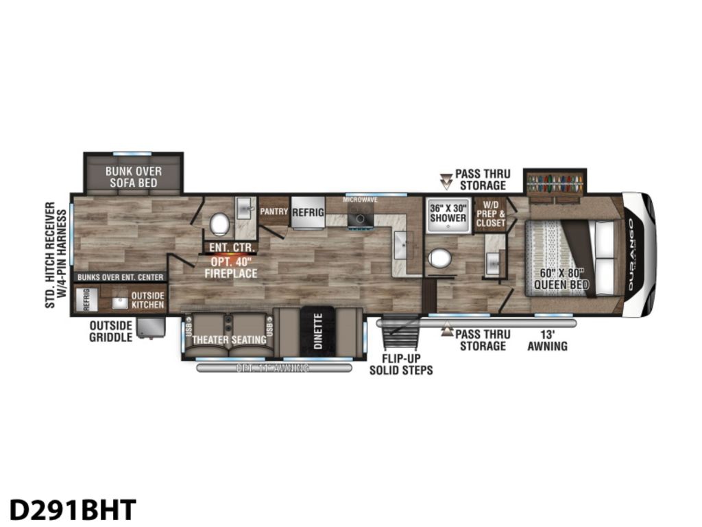 Ready for fifth-wheeling, but still want to travel light? The all-new Durango Half-Ton was made for you, with uncompromising quality and indulgence, and at a lighter price point. This mid-profile rig is nicely equipped with standard features and sumptuous dcor, and all the connectivity and entertainment features you need to keep the troops happy.