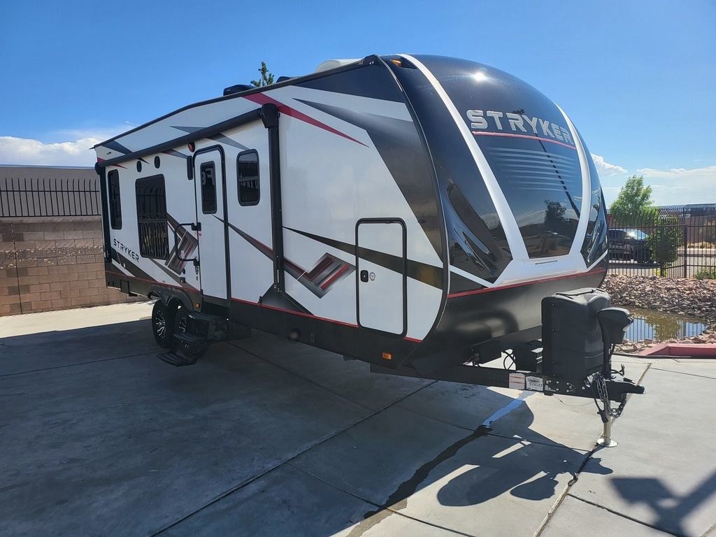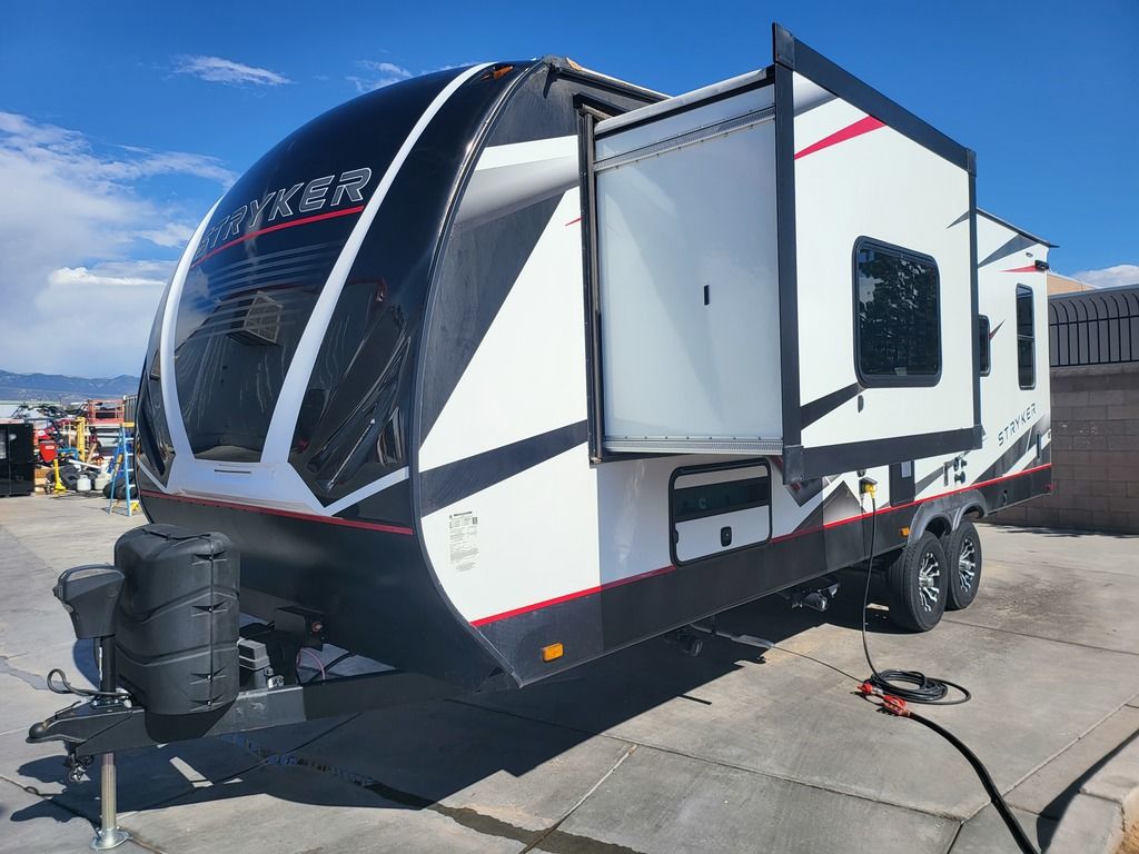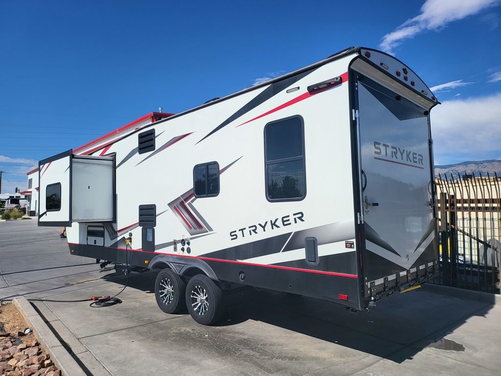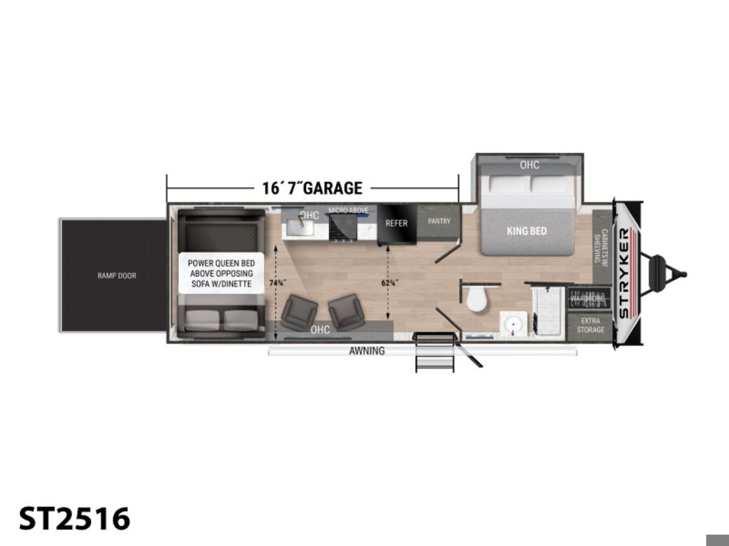 The world is full of adventure. So naturally, you want to get out there and soak up every adrenaline-filled minute you can. For you, we proudly offer the Stryker. Not just any toy hauler, this trailblazer was built by outdoor enthusiasts who know just what youre looking for. Top-of-the-line features like larger appliances, premium sound system with amplifier, sub-woofer, and indoor/outdoor speakers, upgraded suspension, even an optional rear ramp patio with folding rails. Tons of storage capacity for whatever youre hauling side-by-sides, dirt bikes, watercraft, you name it, Stryker has you covered. And, of course, the worry-free dependability that comes with every trailer we build. Stryker The Ultimate Adventure.