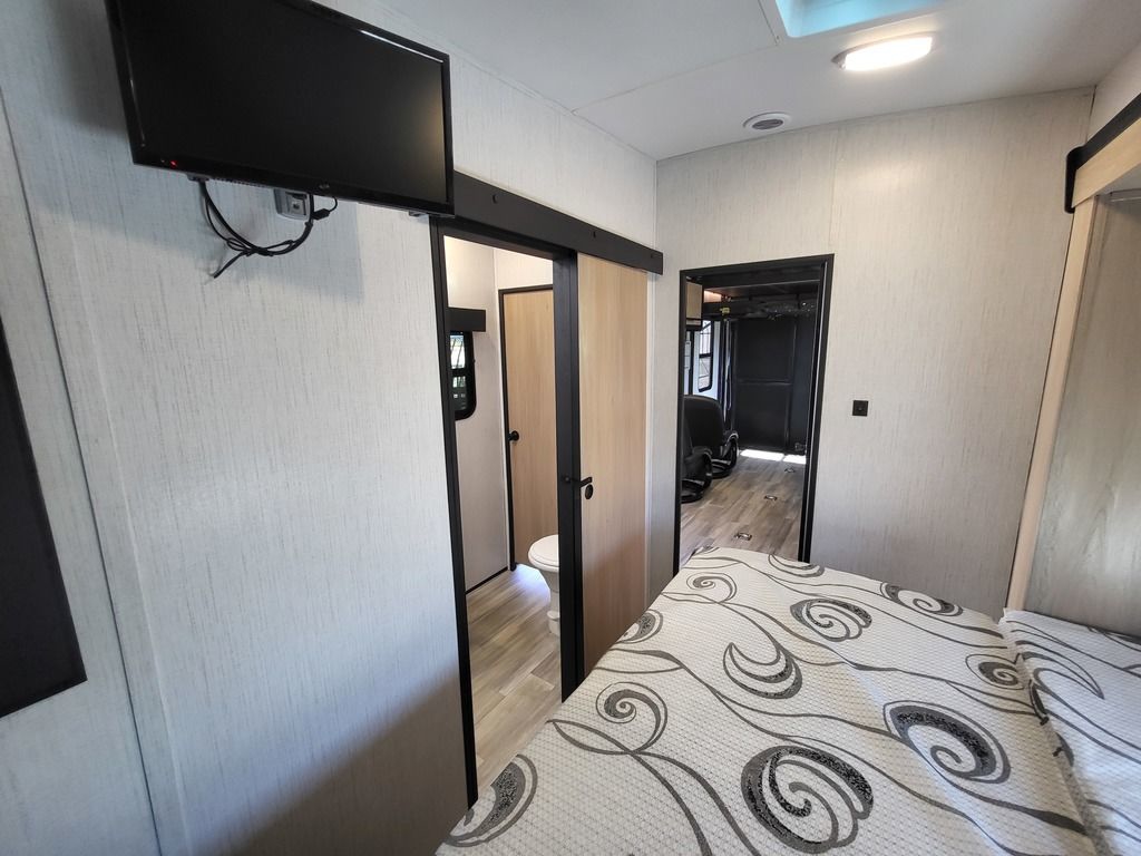 - Dual power Happi-Jac opposing sofa beds in garages w/ queen bed above