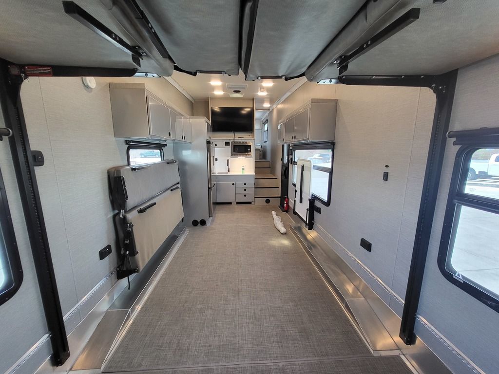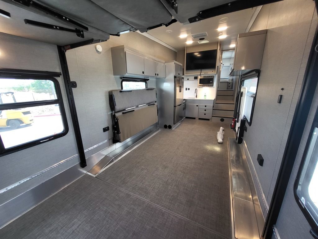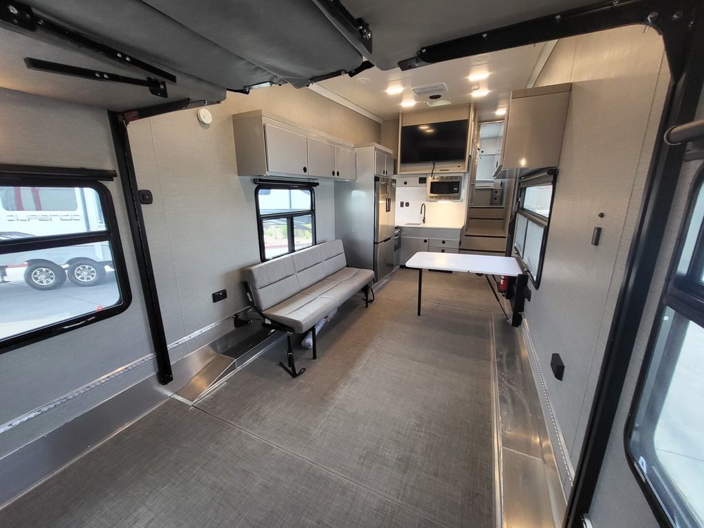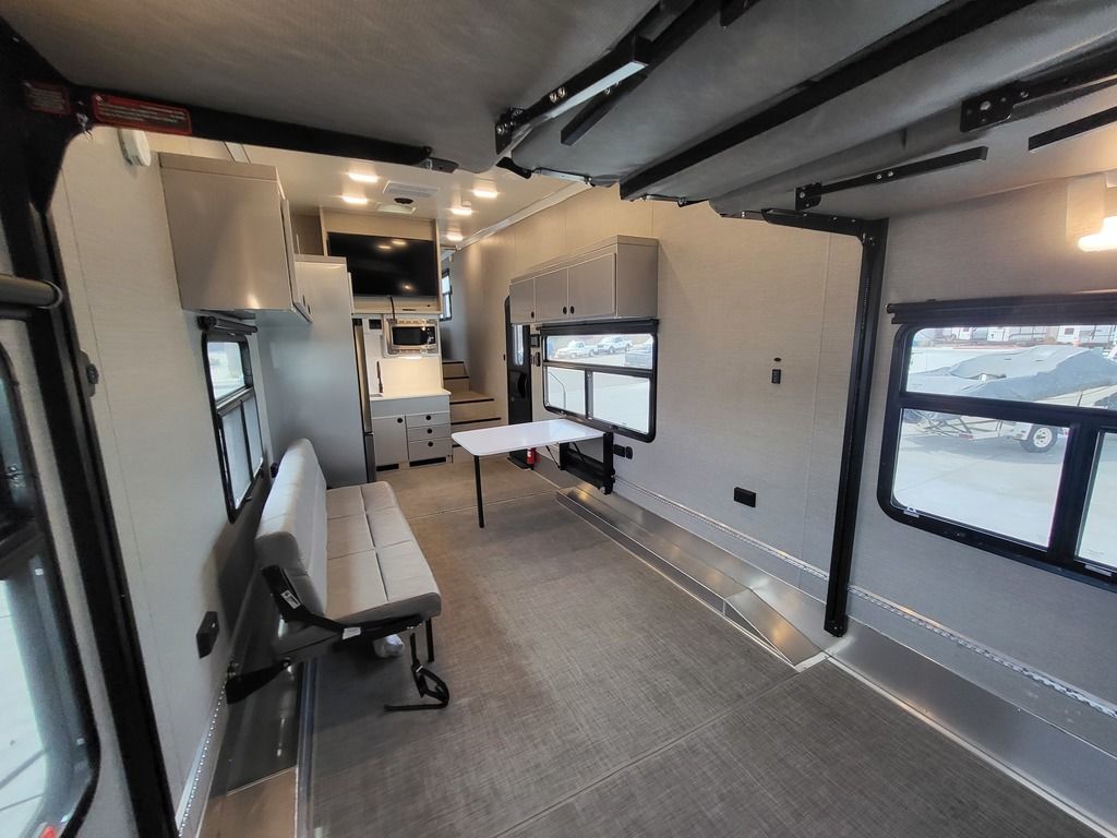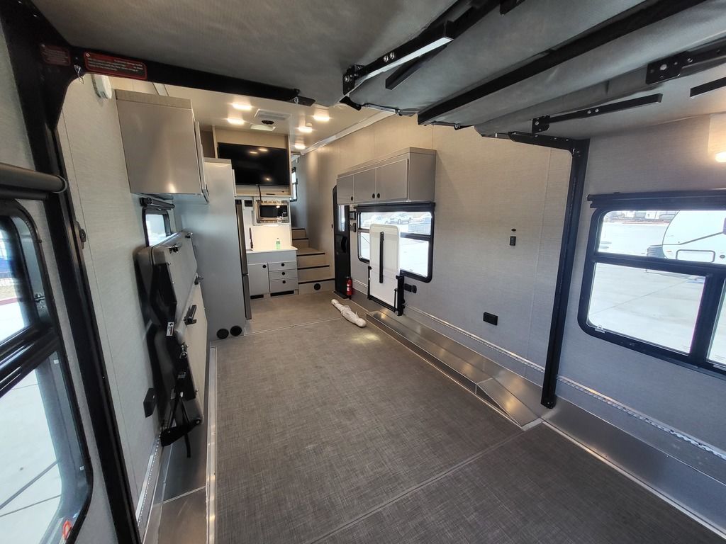 Our Pla toy haulers configure to your activities, your toys and your lifestyle quickly and efficiently. Open up the rear area to accommodate your motorcycles, ATVs and even a full size vehicle. Or quickly transform that space into a large living area that you can configure with sofas, table, dinettes, and beds. Its entirely up to you and your plans. Theres just one thing to consider: What do you want to do today