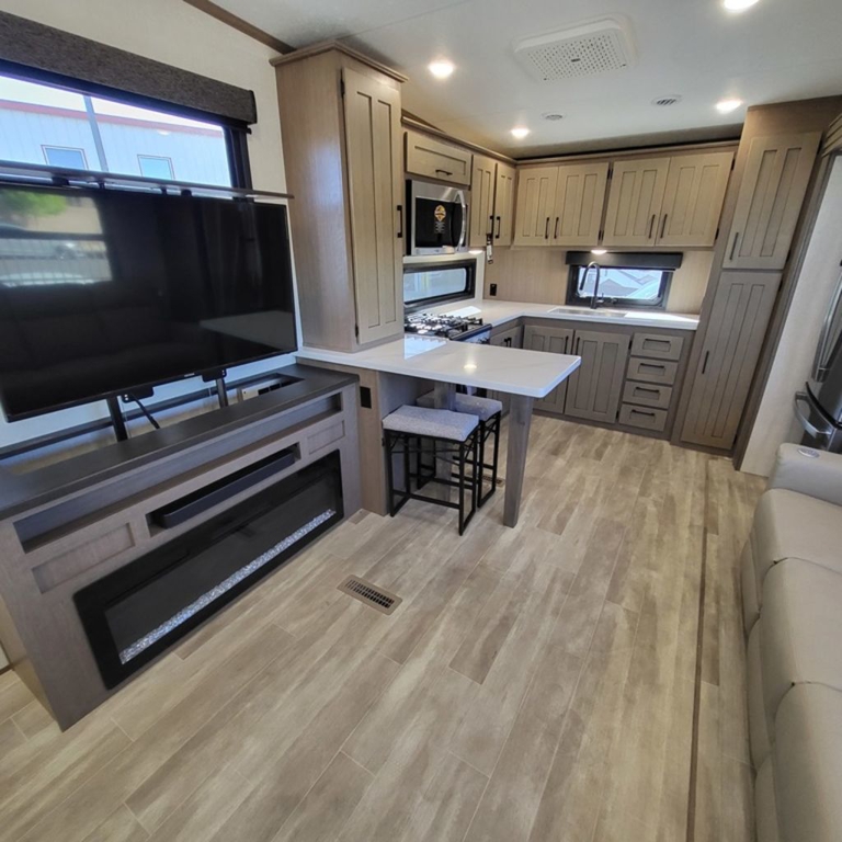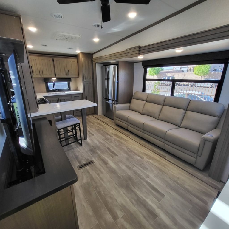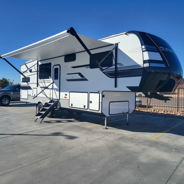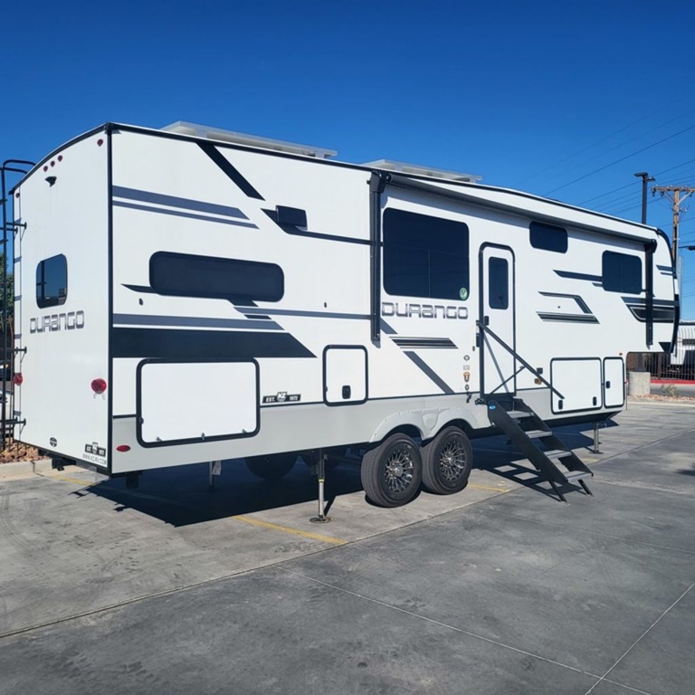 FULL-PROFILE LUXURY FIFTH WHEELSDurango offers all the upscale staples at an affordable price. Durango is approved for full-time RVing with an all-weather insulation package.KEY FEATURES:Off-the-grid solar packageSolar prep on roof for easy expandable prepKing-size bed standardSmart TVs30" convection microwave24" oven with four burner range