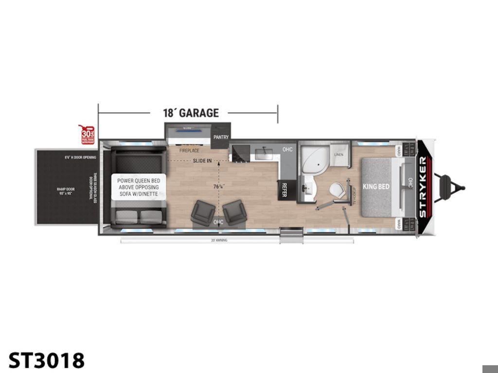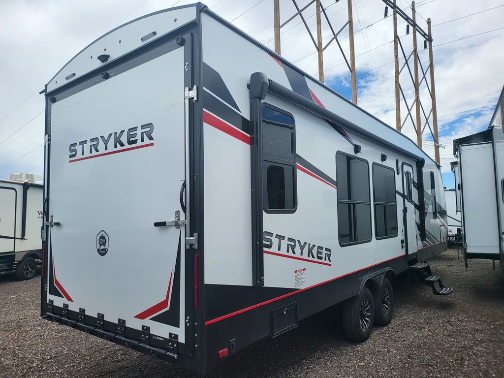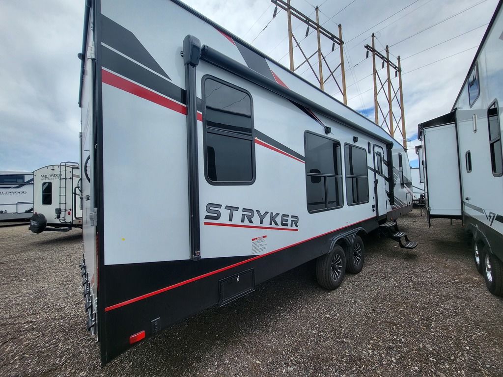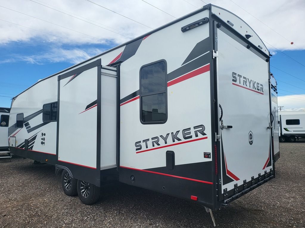 The world is full of adventure. So naturally, you want to get out there and soak up every adrenaline-filled minute you can. For you, we proudly offer the Stryker. Not just any toy hauler, this trailblazer was built by outdoor enthusiasts who know just what youre looking for. Top-of-the-line features like larger appliances, premium sound system with amplifier, sub-woofer, and indoor/outdoor speakers, upgraded suspension, even an optional rear ramp patio with folding rails. Tons of storage capacity for whatever youre hauling side-by-sides, dirt bikes, watercraft, you name it, Stryker has you covered. And, of course, the worry-free dependability that comes with every trailer we build. Stryker The Ultimate Adventure.