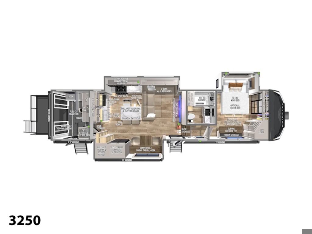 - 3-Way Pass-through Storage w/ Multi-Functional Flip-Up Bulkhead Dividers (Best-in-Class)