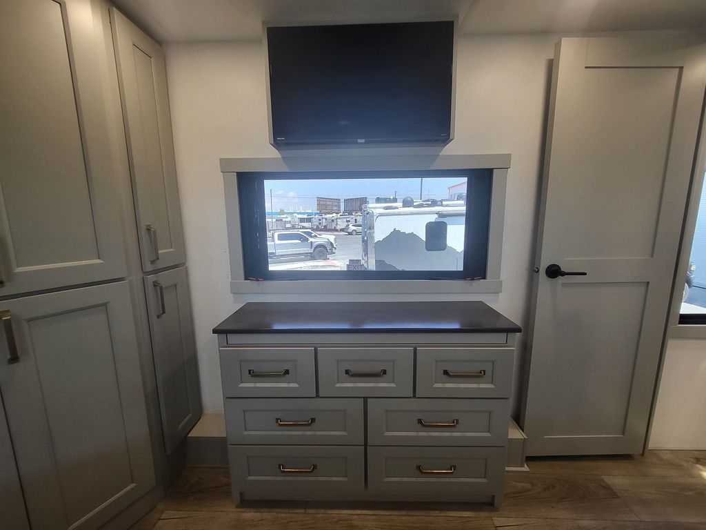 - Hidden Storage Cabinets (Above & Below Main TV)