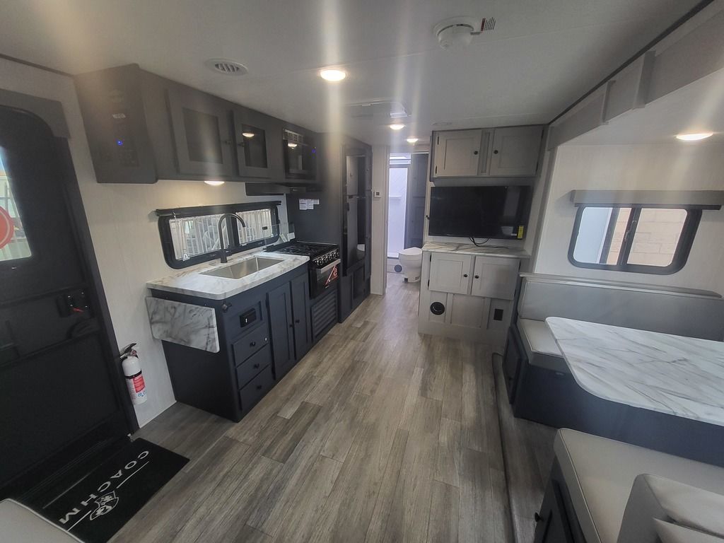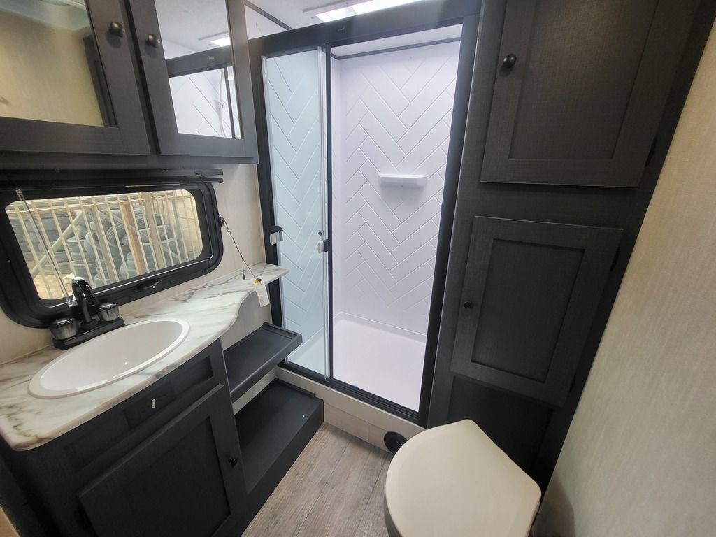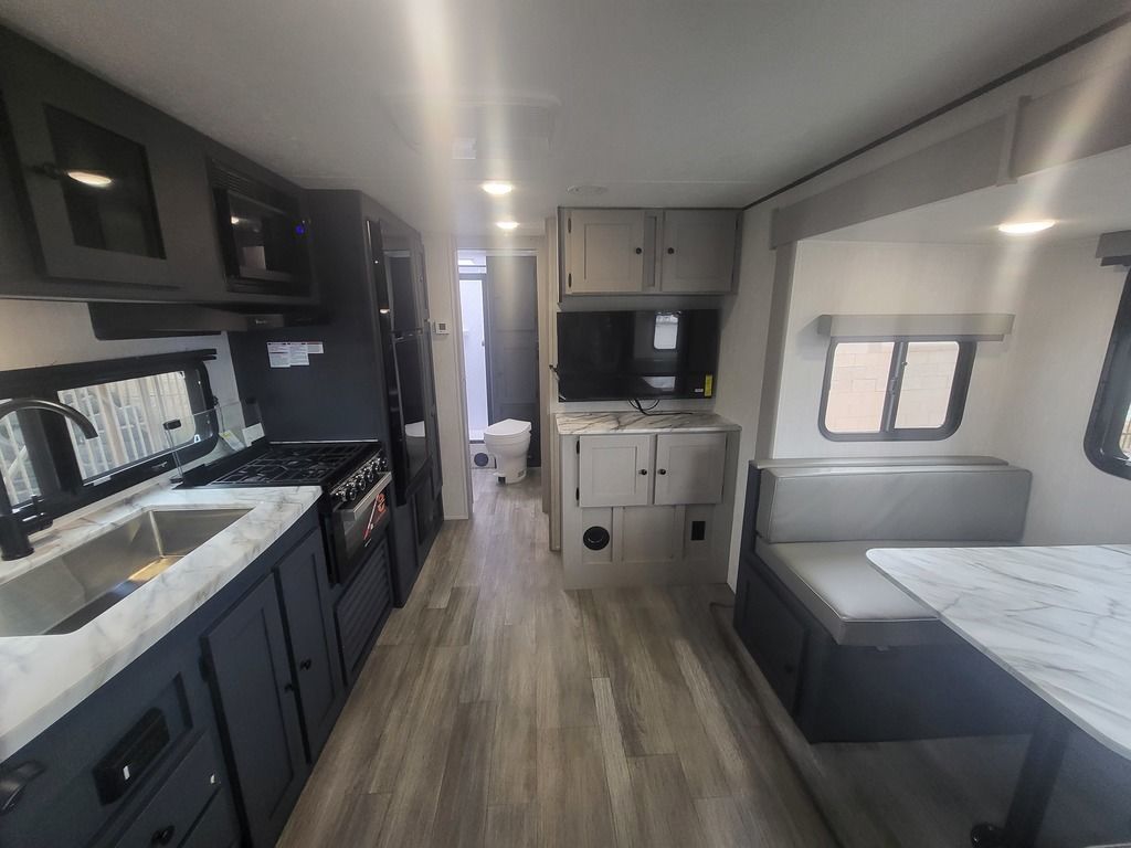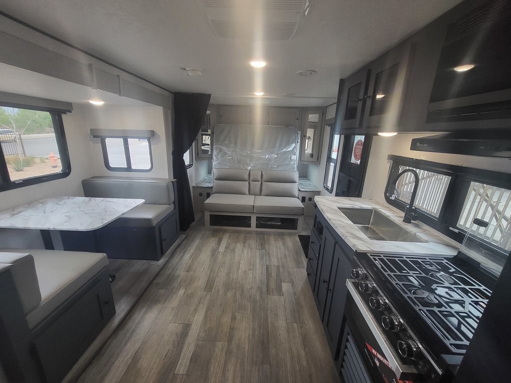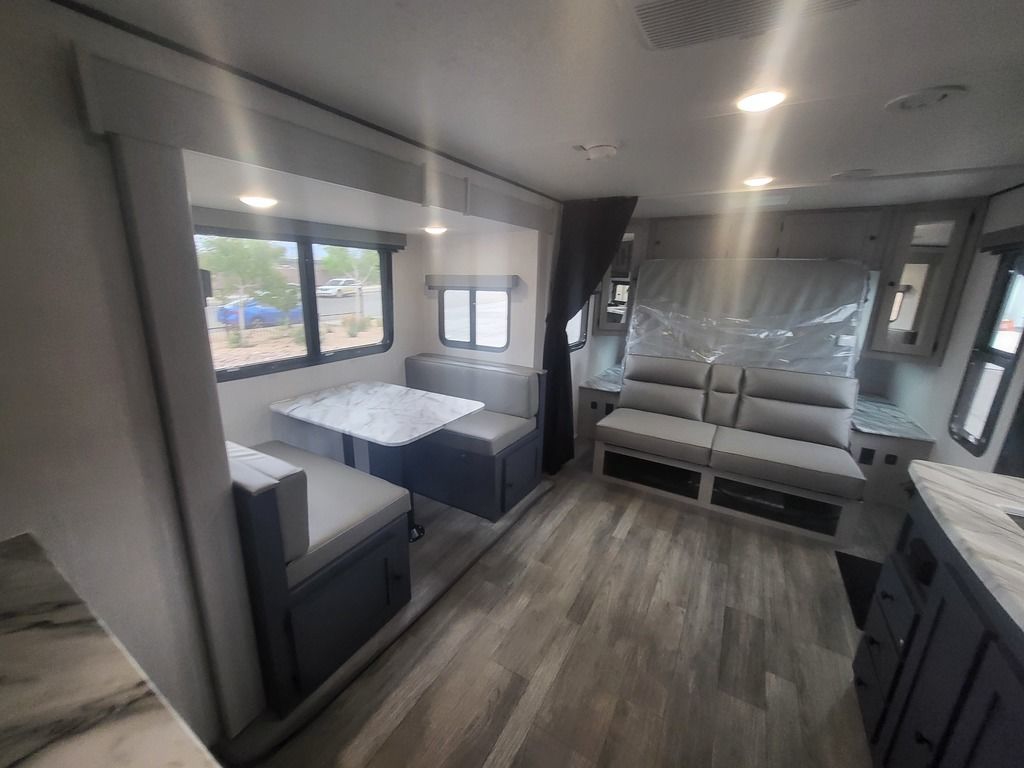 - Large Oversized Booth or U-shaped Dinette w/Sliding Door Storage Access (Select Models only