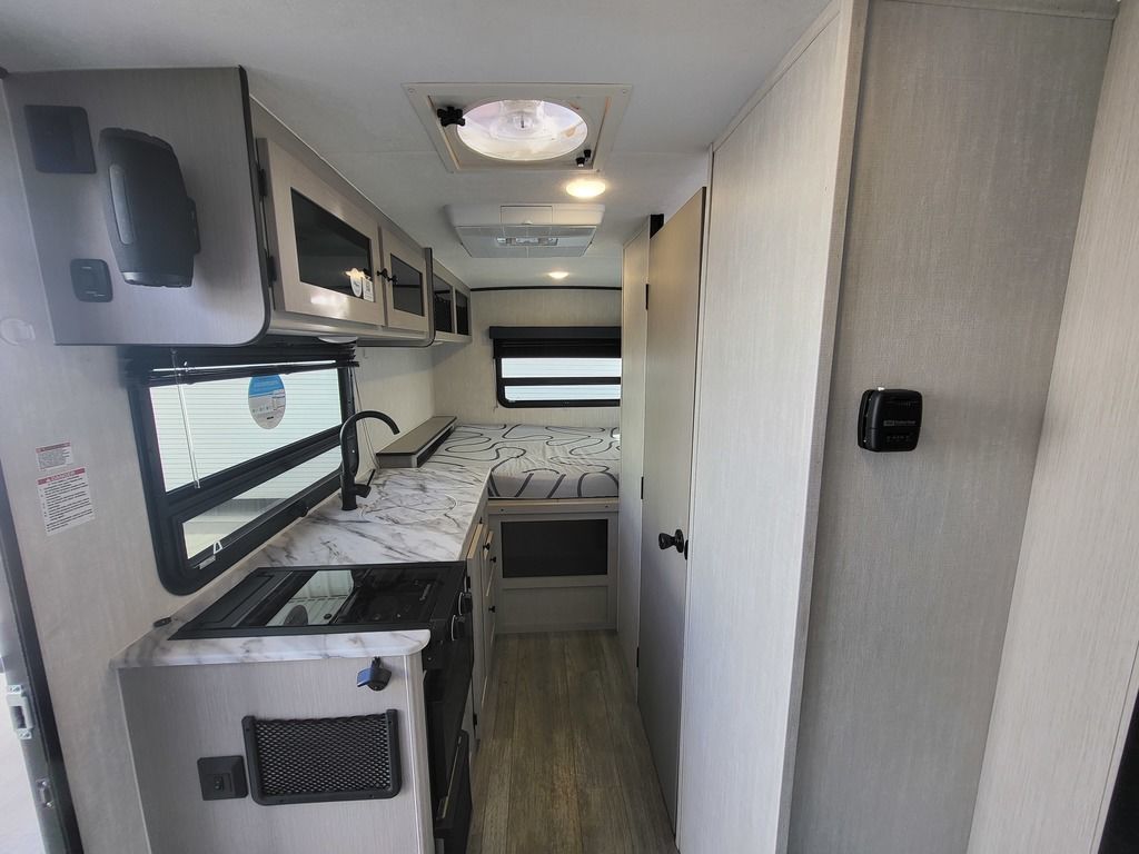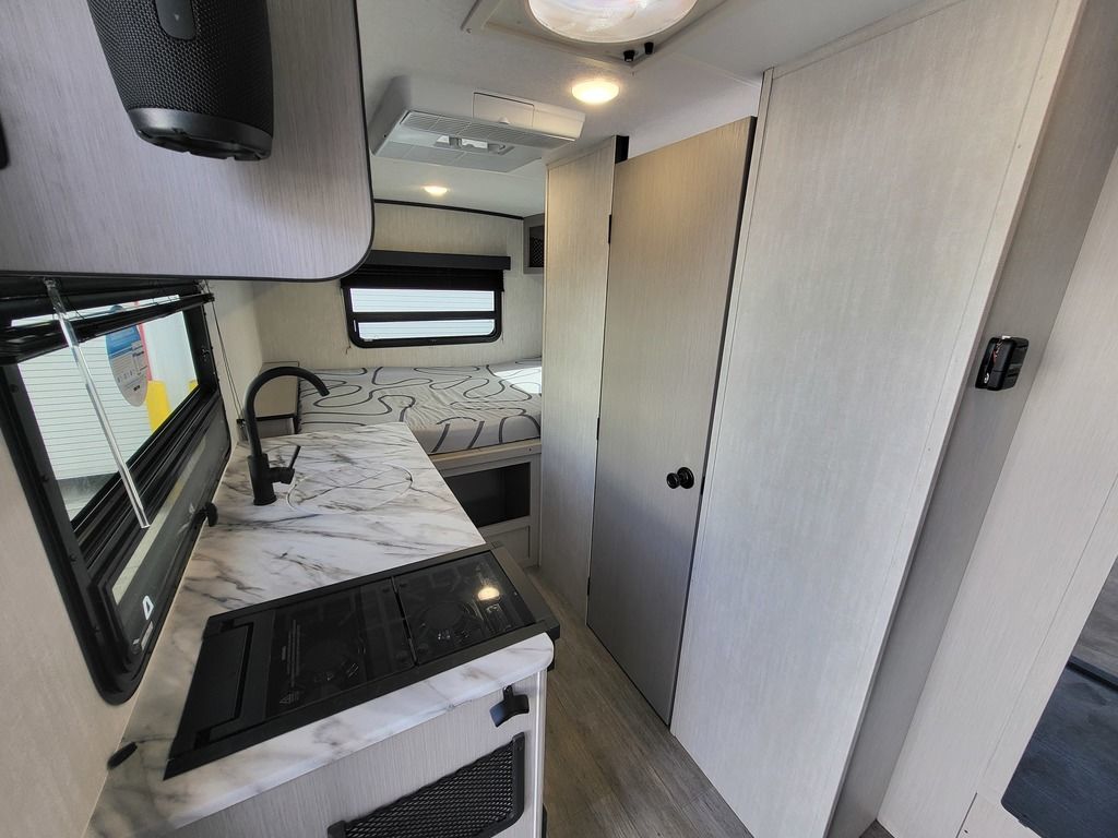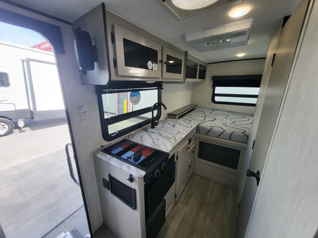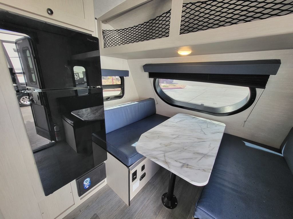 DESIGNED TO LEAVE THE WORLD BEHIND. Adventure awaits in this 7’ wide, easy to tow trailer with big amenities. This mighty little camper boasts true alumi-cage construction, dual layer Azdel, and comes standard with All-Terrain Tires, Bike Rack, Step light, and a 50 Gallon Fresh Tank. The Optional SUPER SOLAR Package allows for truly REMOTE Camping.