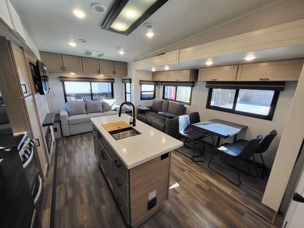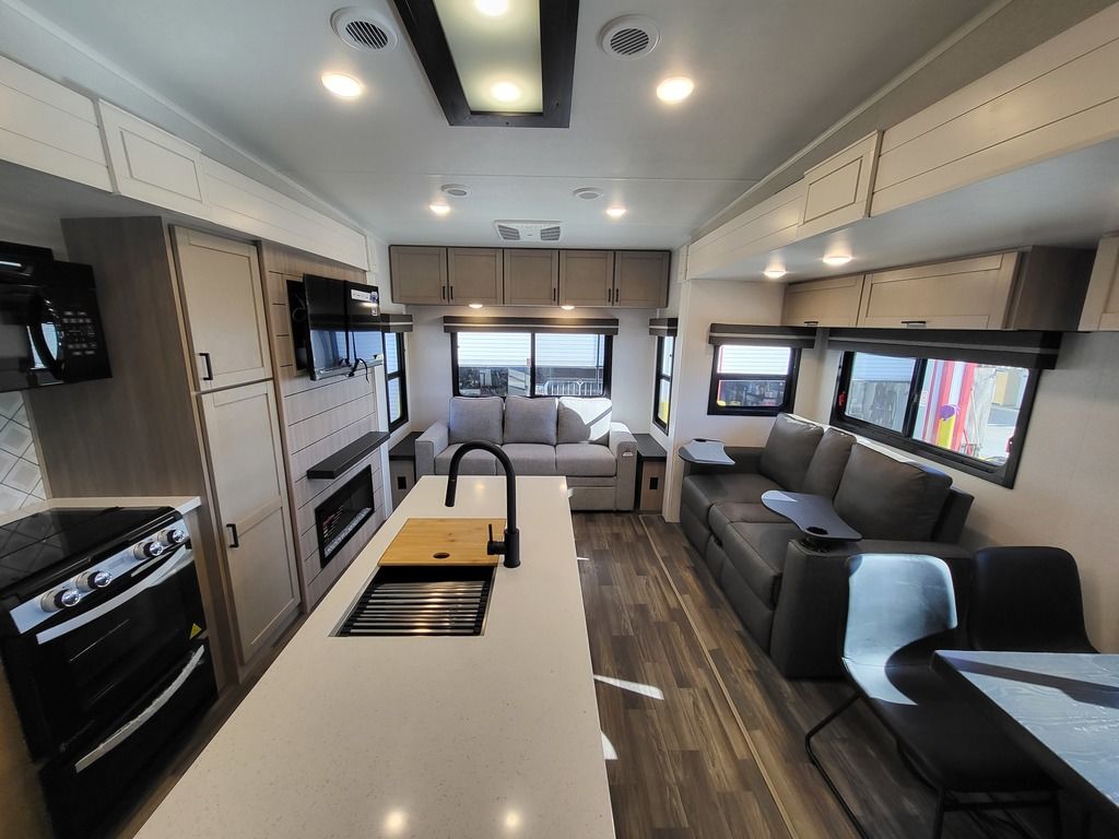 Take your next camping quest in the mid-size Starcraft GSL Fifth Wheel, where convenience and comfort are a standard on this series. The GSL Fifth Wheel is 100 wide and the main slideout is 42 deep, creating extra space without the weight. The slideout system is outfitted with the ACCU-SLIDE Slide System, with 4 corner box compressions, adding to the weight saving on this fifth wheel. The automatic leveling system on this unit is the 4 Point LevelLoc System with JT's Strong Arms, eliminating the rocking motion once you get to your campsite. Our axles are built with brass bushing with wet bolts, to avoid plastic bushing that will wear out over time. Our holding tanks are secured using bolts and welding in the holding tank hangers, for extra reliability. Keeping up with the latest technology, this unit has the smart RV system, TravelLINK, allowing for Bluetooth control of the awnings, lights, slideouts, heating, cooling and more. This smart feature can control these functions from your phone or tablet, a