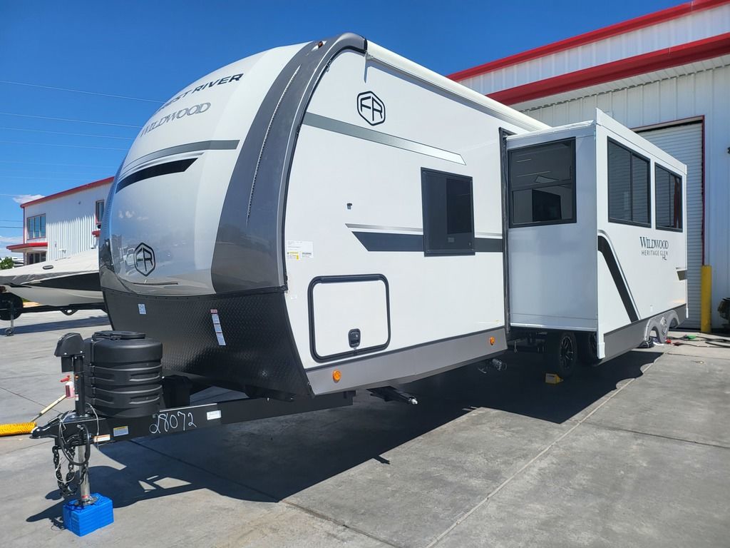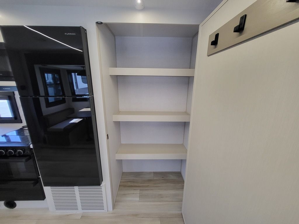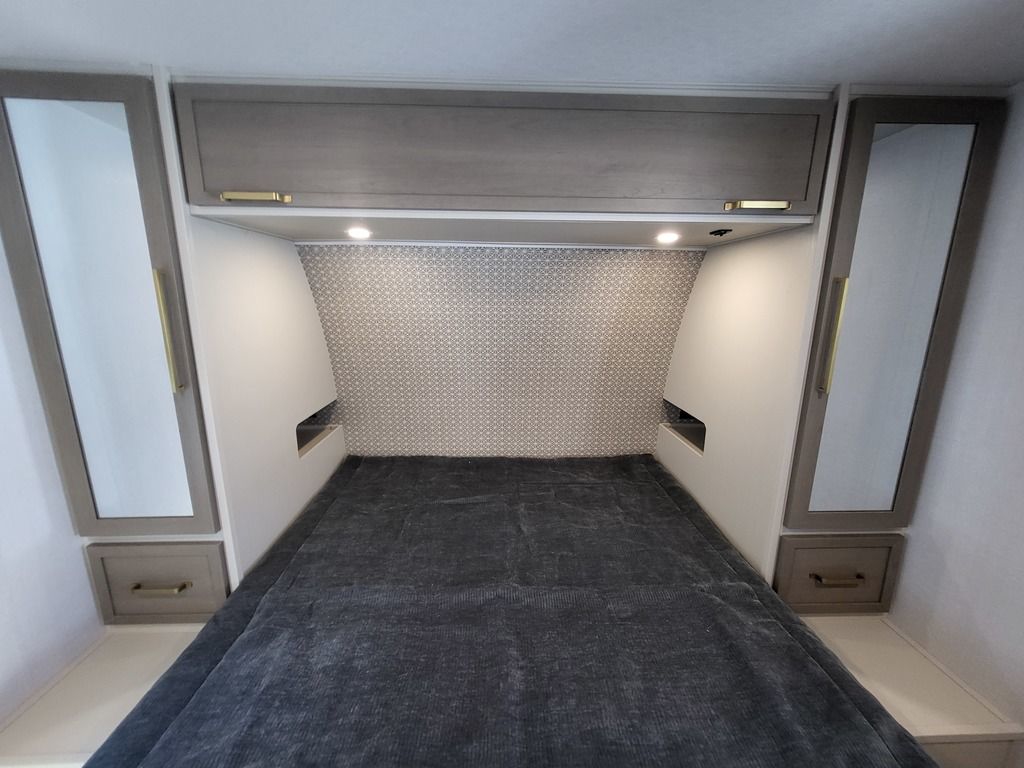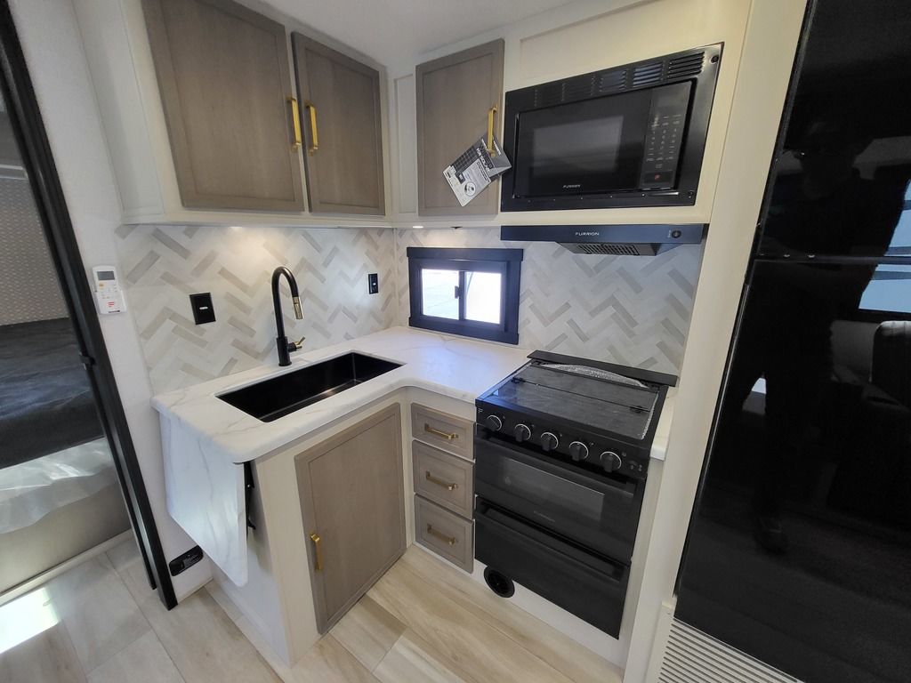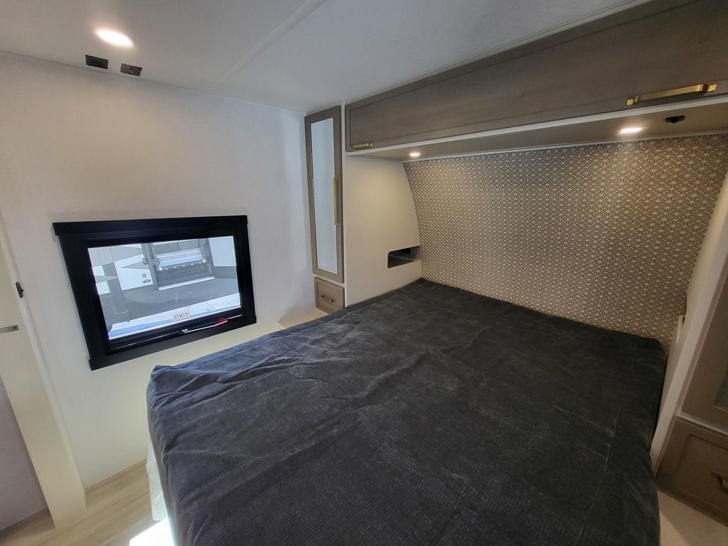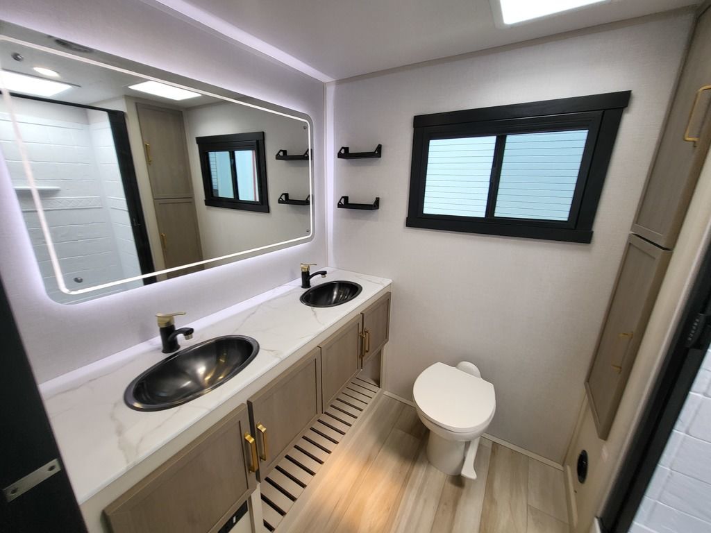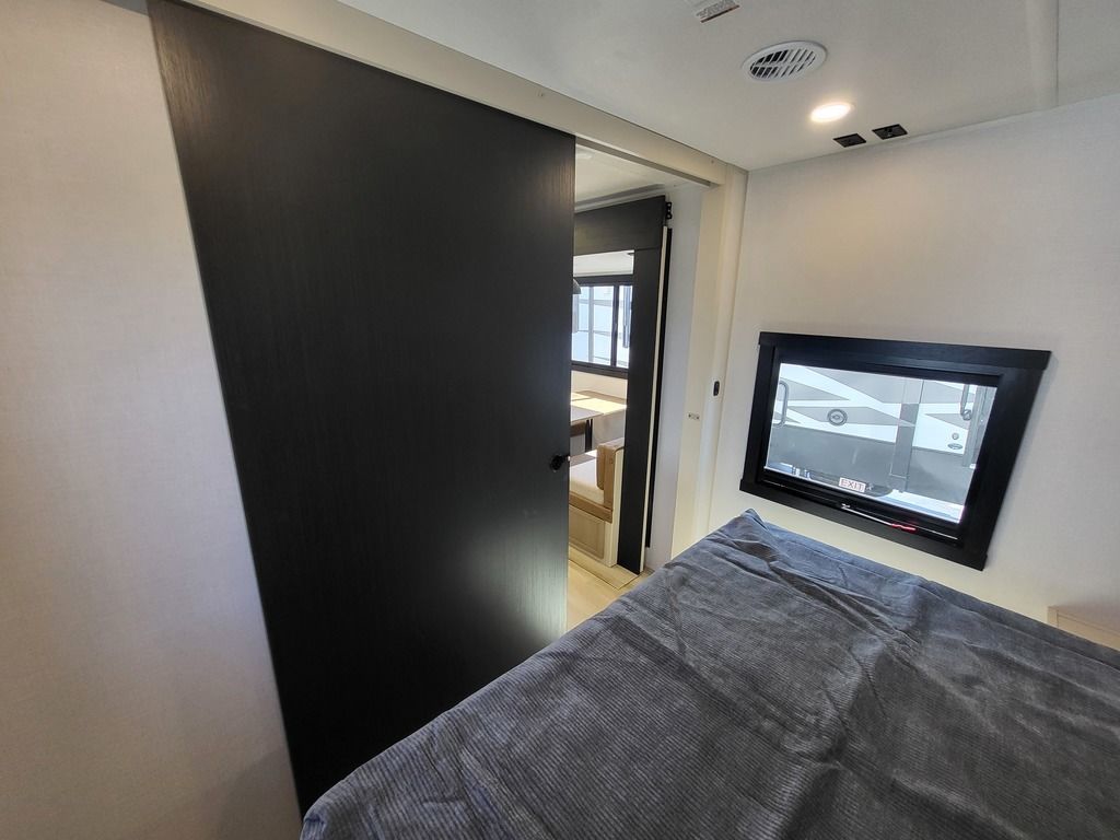 No corners were cut in the 25RBHL. The theater seat (facing the entertainment center) and full-sized dinette separate the best-in-class bathroom and bedroom. 36" wide sliding barn doors offer complete privacy, or the ability to open the 25RBHL up from front to back. This camper also offers a refrigerator outside underneath the awning.